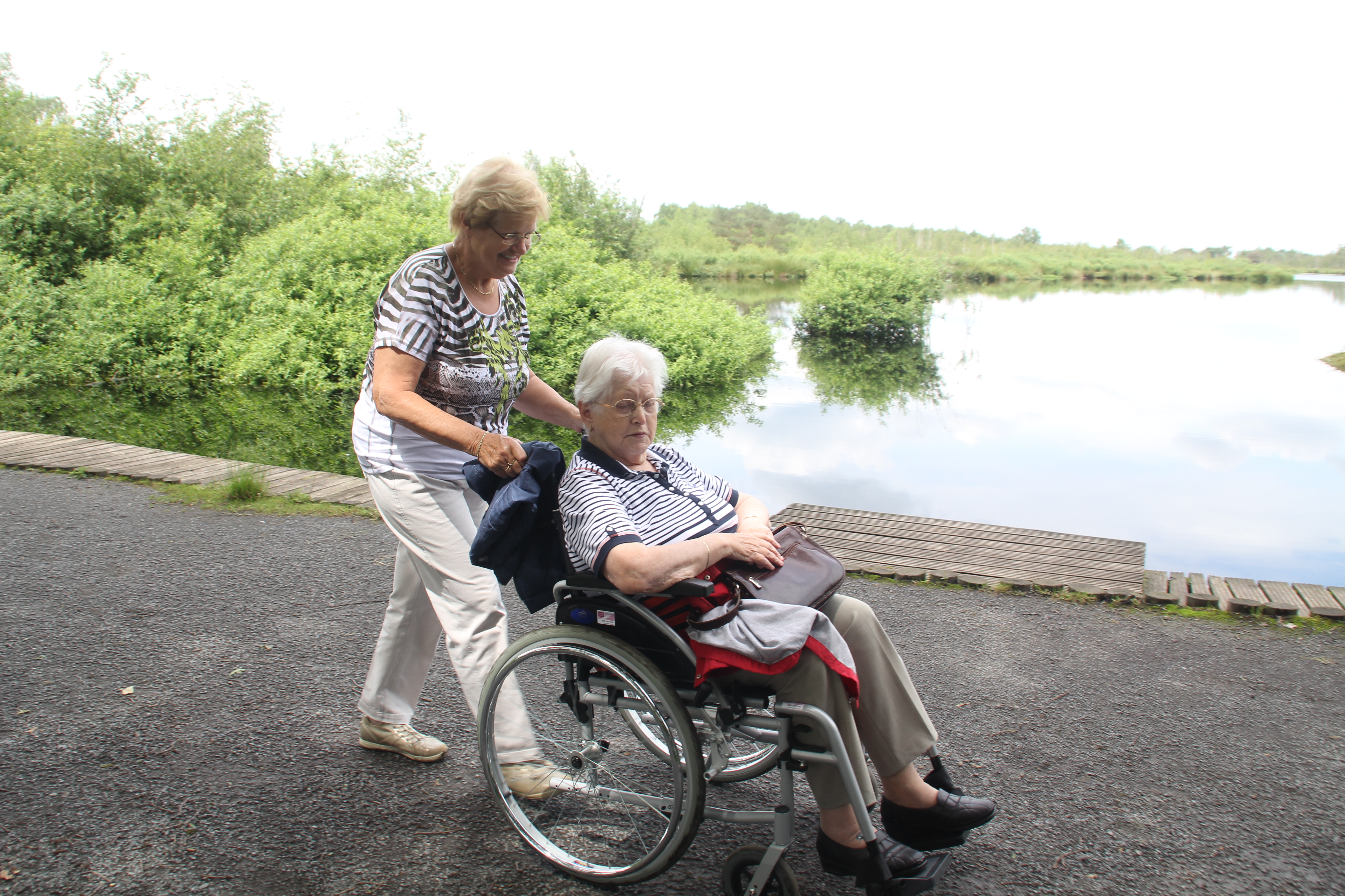 De weersvoorspellingen hadden vooraf niet veel goeds gebracht. De vraag was: “Houden we het droog tijdens de wandeling met zoveel gasten?” Rond de klok van half twee stonden er 17 rolstoelen klaar. Deze werden gratis ter beschikking gesteld door het uitleenpunt van het Ospels-Steunpunt én Medicura in Nederweert. In totaliteit hebben 33 gasten gebruikgemaakt van de voortreffelijk georganiseerde middag. Naast de 14 vrijwilligers die er de gang in moesten houden waren er nog enkele gasten die zo goed ter been waren dat ze behulpzaam waren bij het duwen van hun eigen dierbaren en andere gasten. Ook zag je gasten met rollator en een enkeling met wandelstok. Kortom een mooi lang lint over het voor rolstoelers verhard wandelpad. Hulde aan Staatbosbeheer.