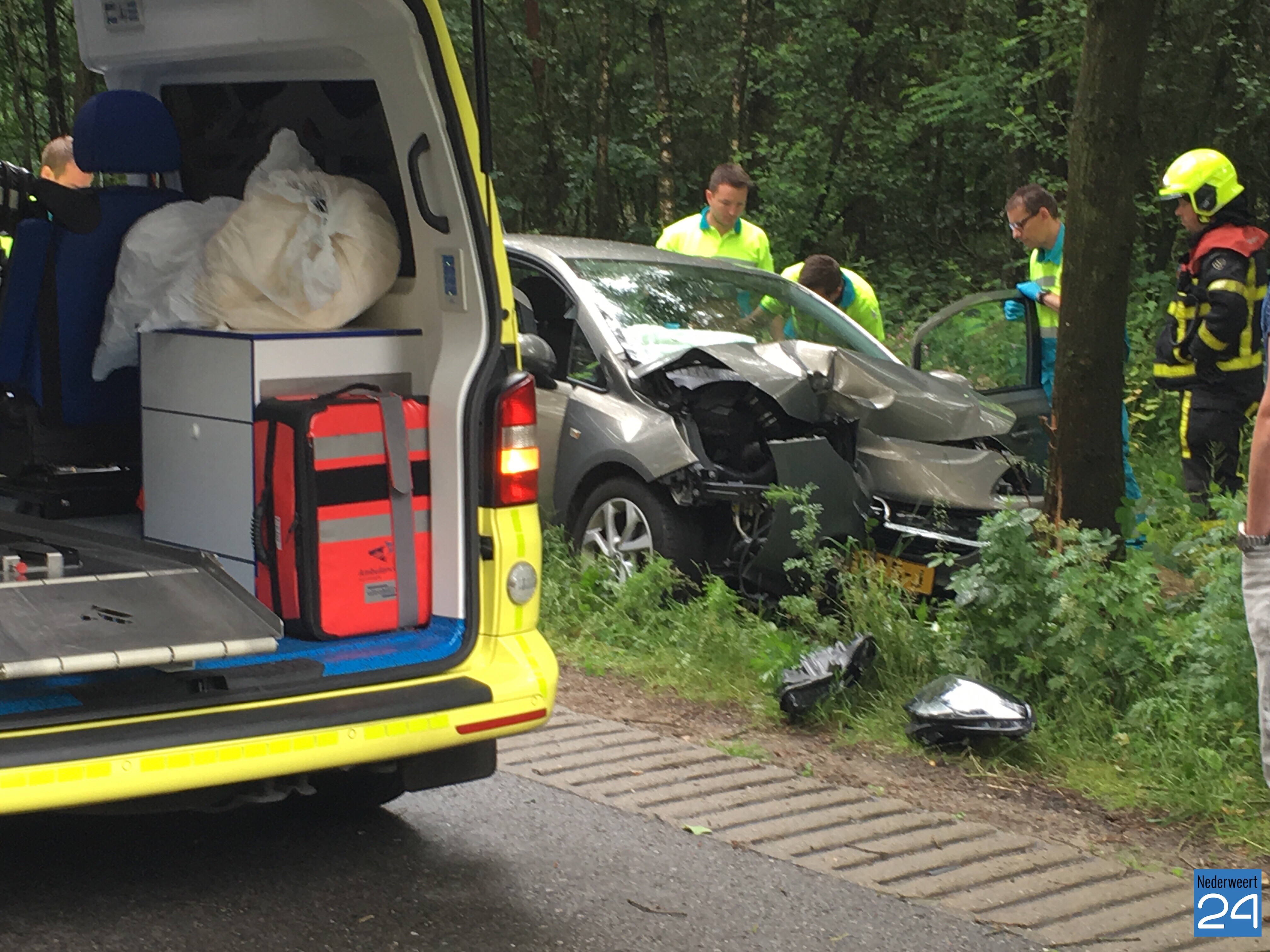 De auto is door onbekende oorzaak van de weg geraakt en tegen een boom tot stilstand gekomen. Beide inzittenden zijn met onbekend letsel naar het ziekenhuis gebracht.