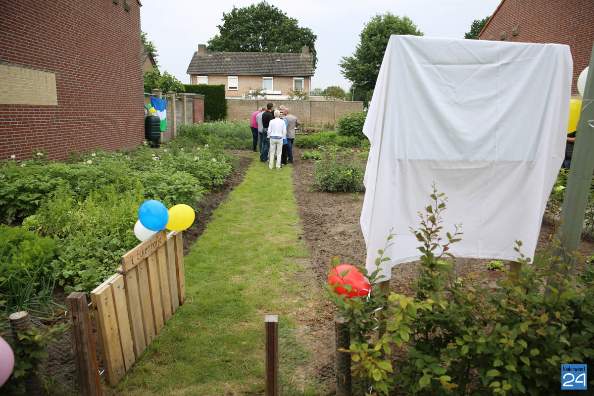 Samentuin Nederweert-13Op zaterdag 25 juni is de eerste Samentuin aan de Eikenstraat in Nederweert officieel geopend door wethouder Geraats in het bijzijn van alle betrokkenen én natuurlijk de initiatiefnemers Hinka van Haren.