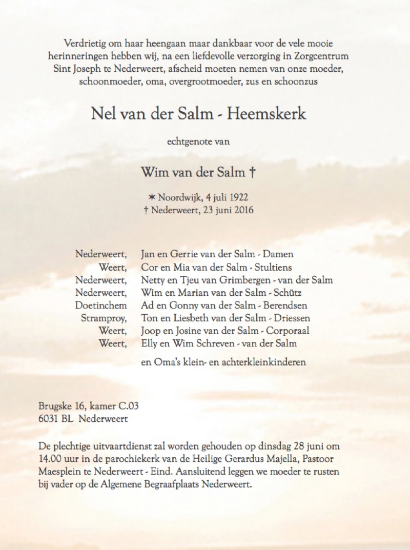 Overlijdensbericht: Nel van der Salm – Heemskerk