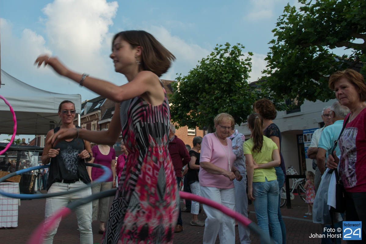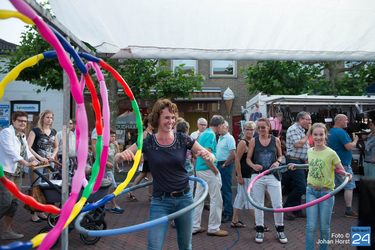 Je kon de spieren nog eens lekker los te maken met een ware “hula hoop” of tijdens een dansje op de aanstekelijke muziek van Johan Veugelers en The Oaken Towels. Na de braderie was het nog lange tijd gezellig op de terrassen van het Horecaplein. De gezamenlijke ondernemers van OVNederweert hebben voor een fantastische Zomerbraderie 2016 gezorgd.
