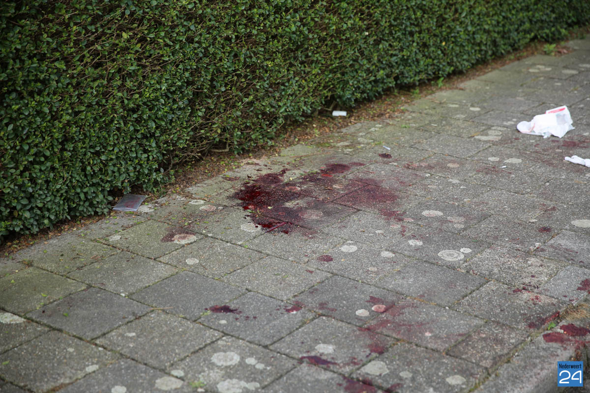 Door de kracht en het glas heeft de man zichzelf flink verwond waardoor alles met bloed is besmeurd. Het lijkt wel een slagveld.