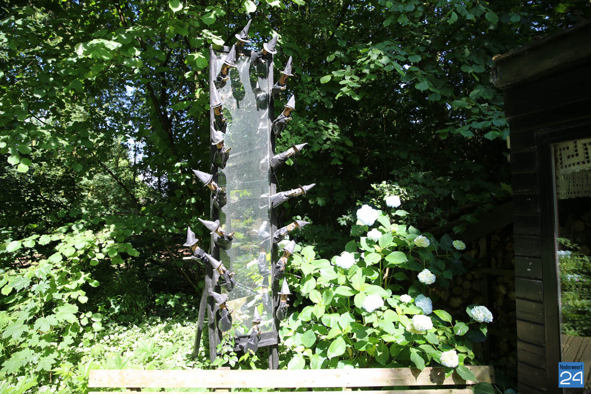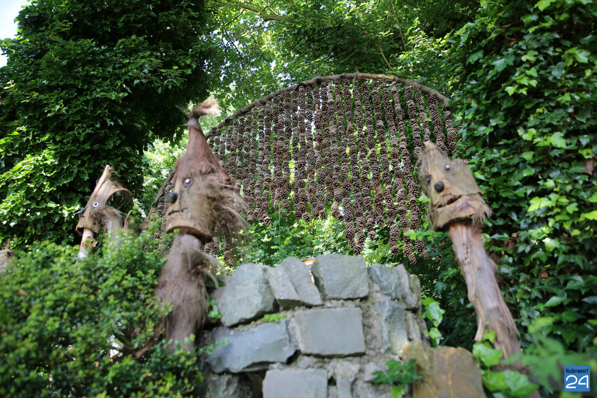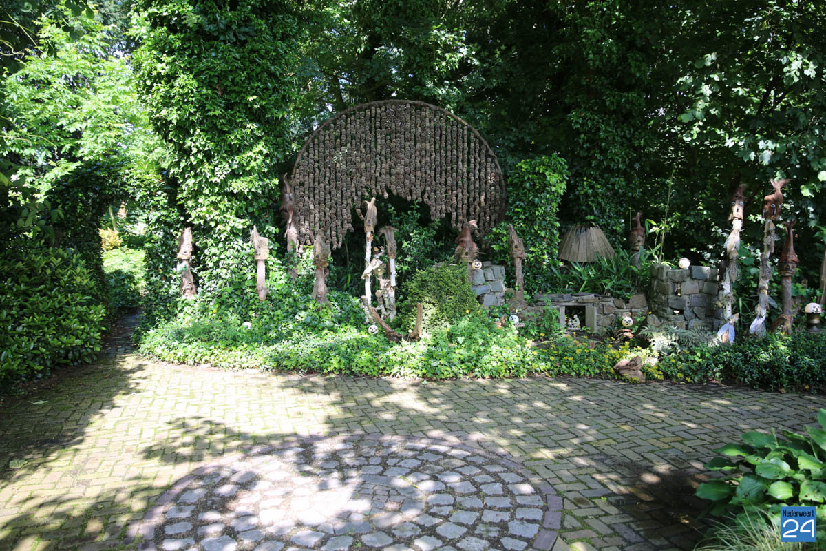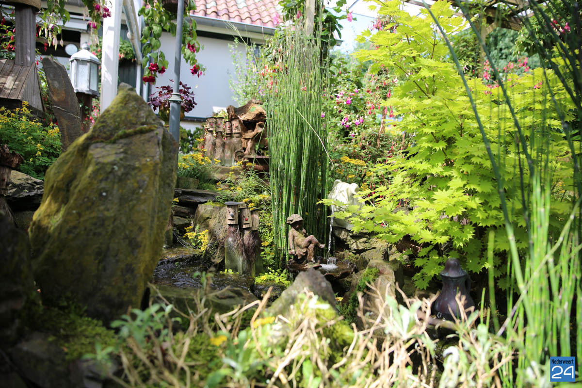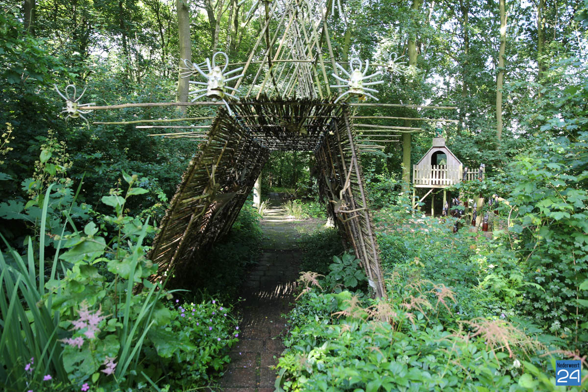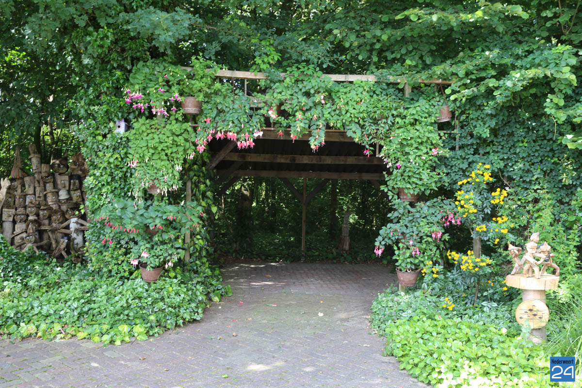 In het bos is een Afrikaanse straat aangelegd, gemaakt van 20 dode palmen en 350 kabouters “op de fles”. Daarnaast is op het terras een grote pergola gebouwd waar meer dan 100 soorten fuchsia’s bloeien. Een waar sprookje om doorheen te wandelen. Een prachtige locatie in Nederweert waar je van mei t/m september (op afspraak) altijd welkom bent. Gewoon even bellen 0495 – 632 131.