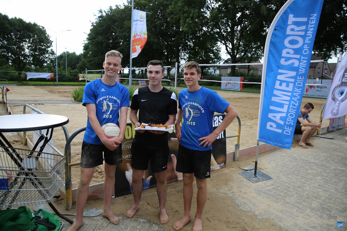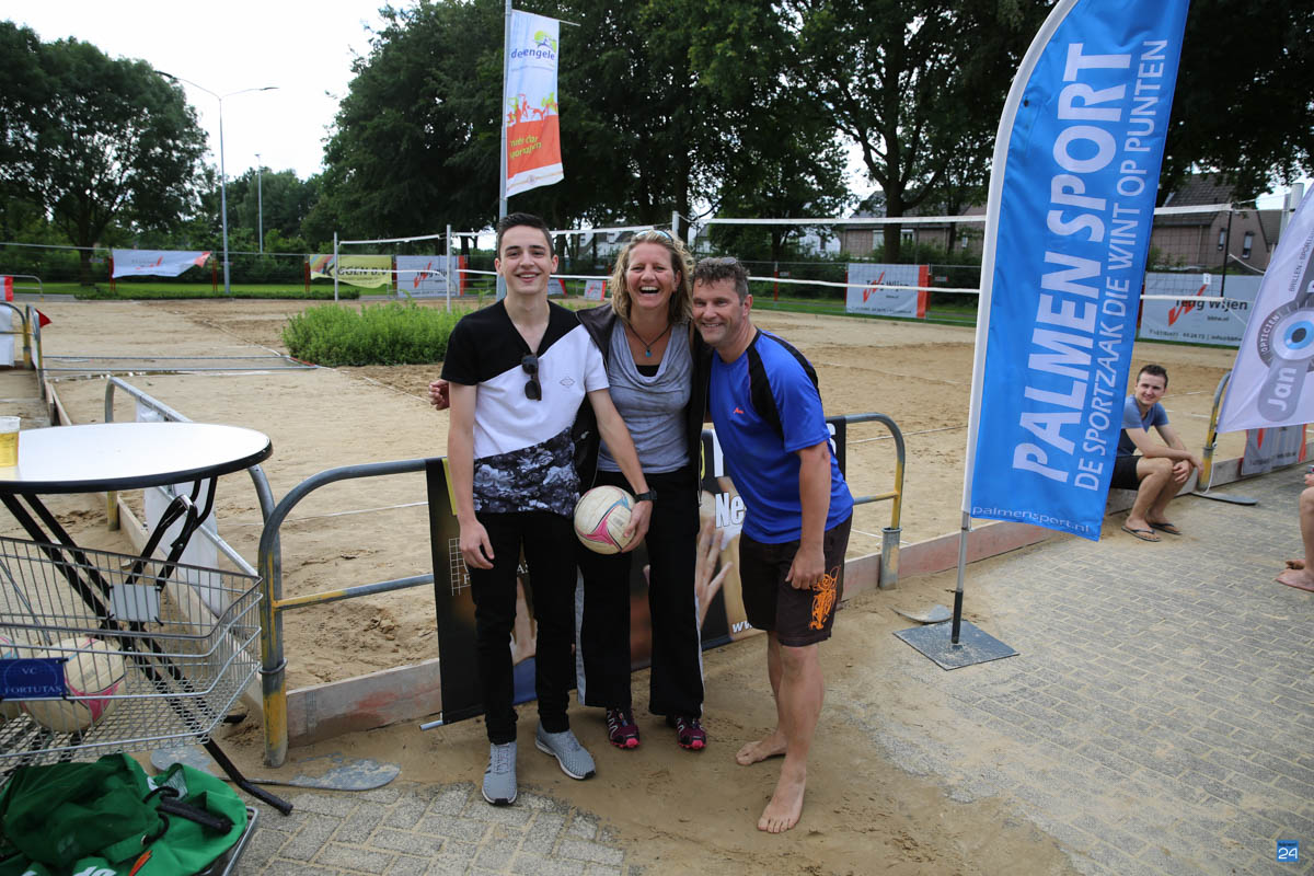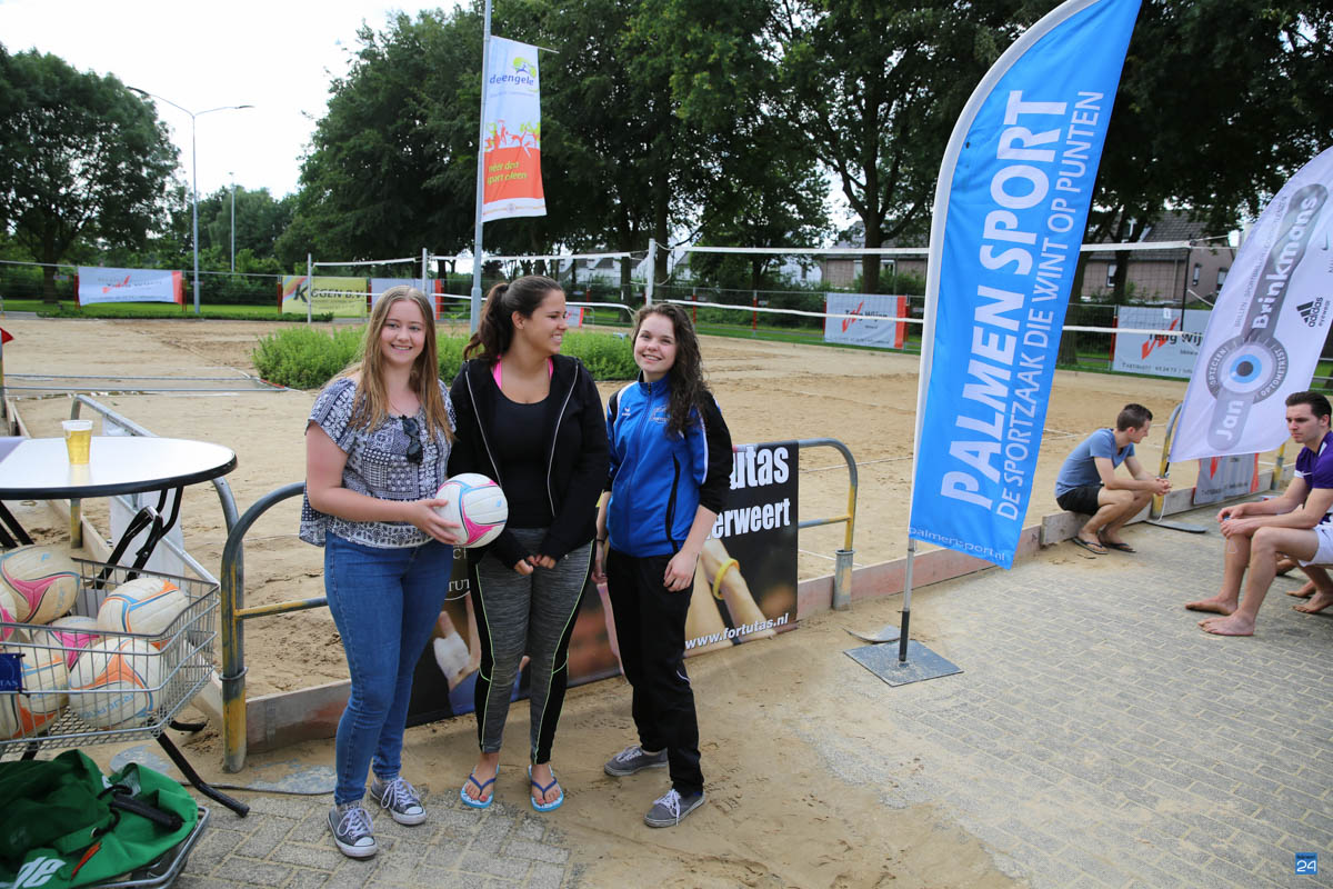 Afsluiting Beach Event Nederweert 2016-7De slotdag van het Open Beach Volleybal Toernooi en van het Bengele Beweegt Beach Event startte met regen. Daardoor duurde het drie kwartier voordat ze met de wedstrijden konden starten. De tien teams hadden er veel zin in en wachtten rustig af tot het droog werd. Uiteindelijk konden ze in een mooi zondagmiddag zonnetje starten en daardoor kwam er ook veel publiek kijken bij de leuke wedstrijden tijdens dit gezellige Beach event.