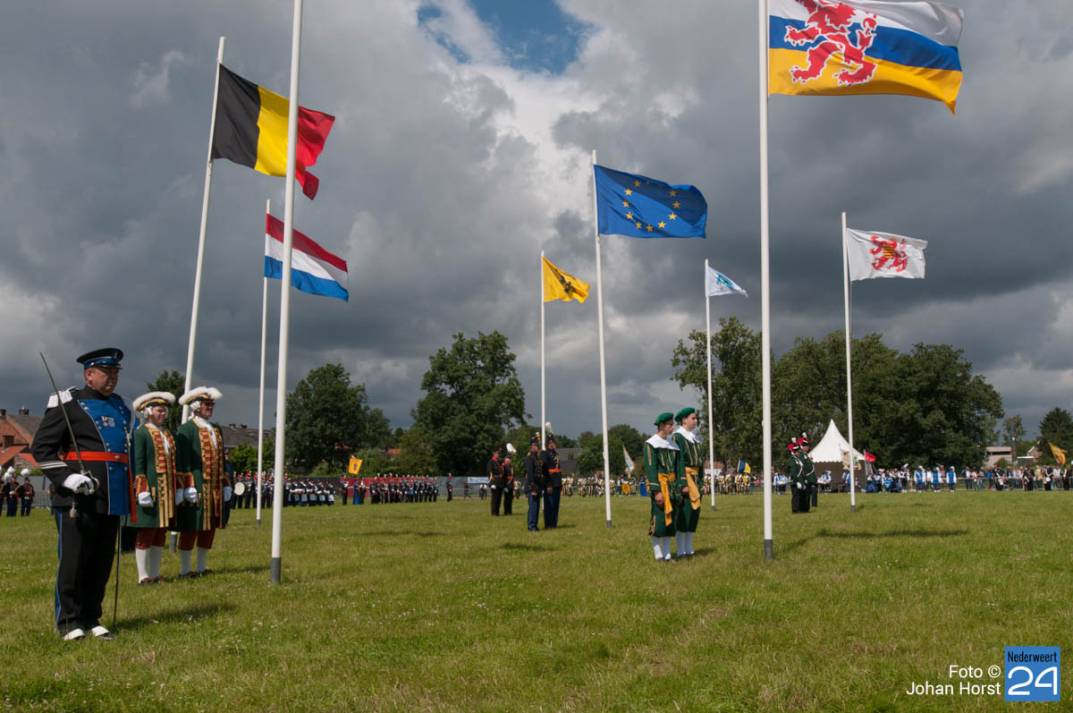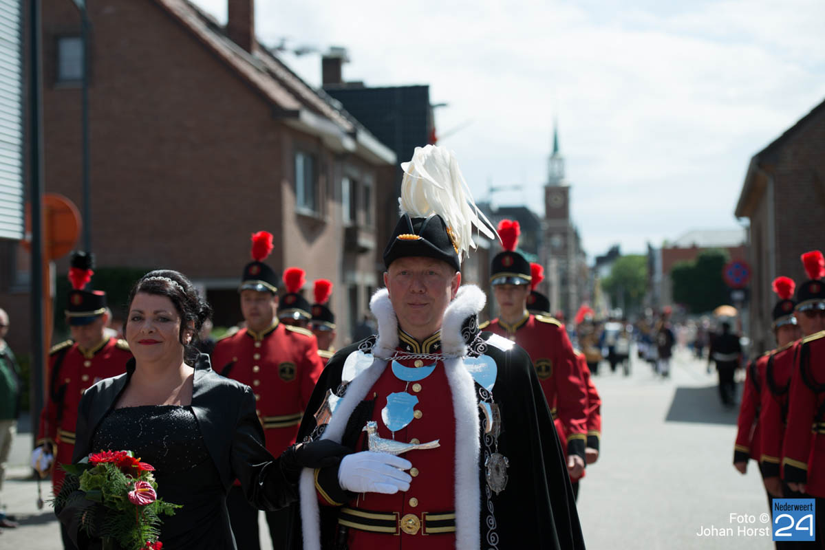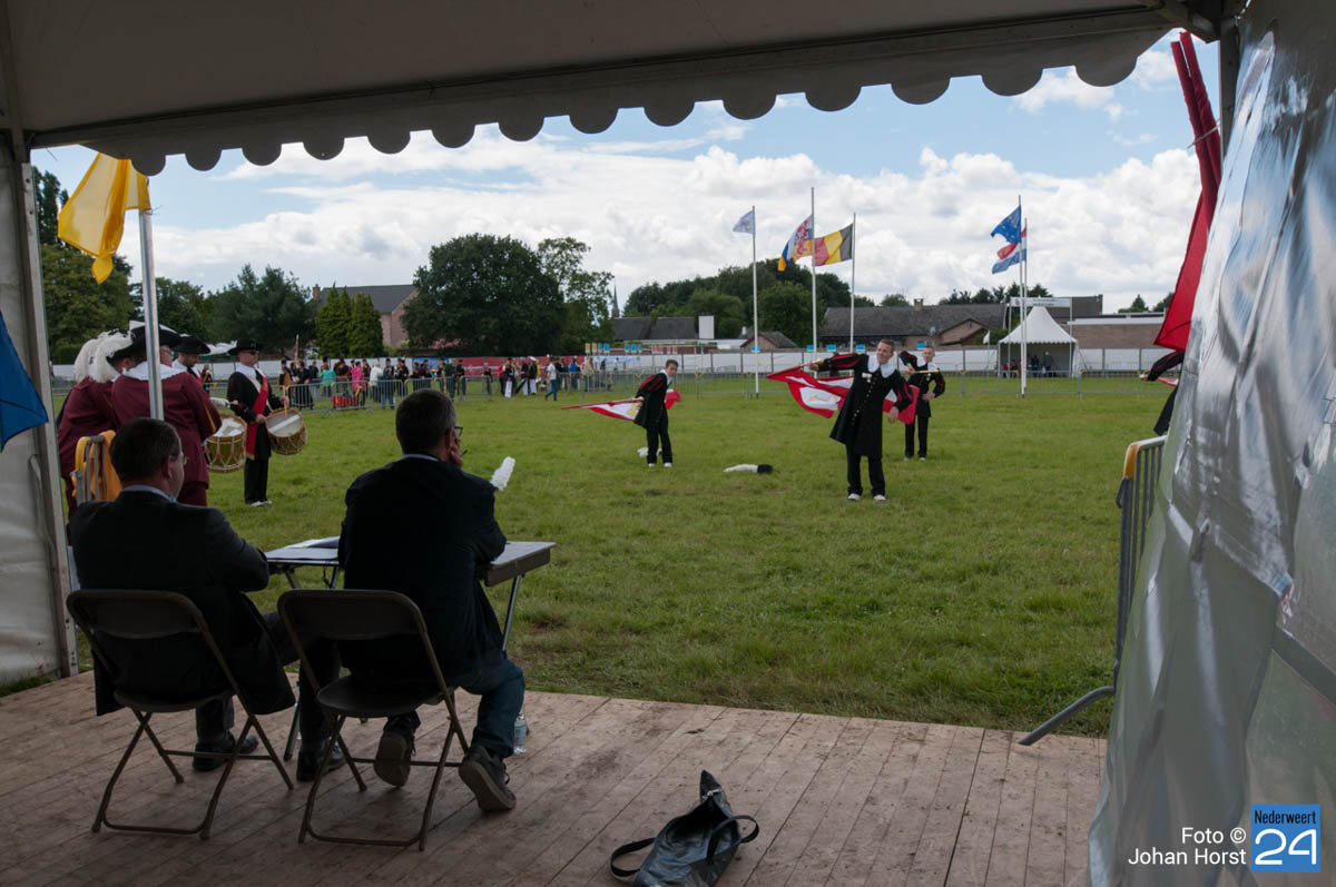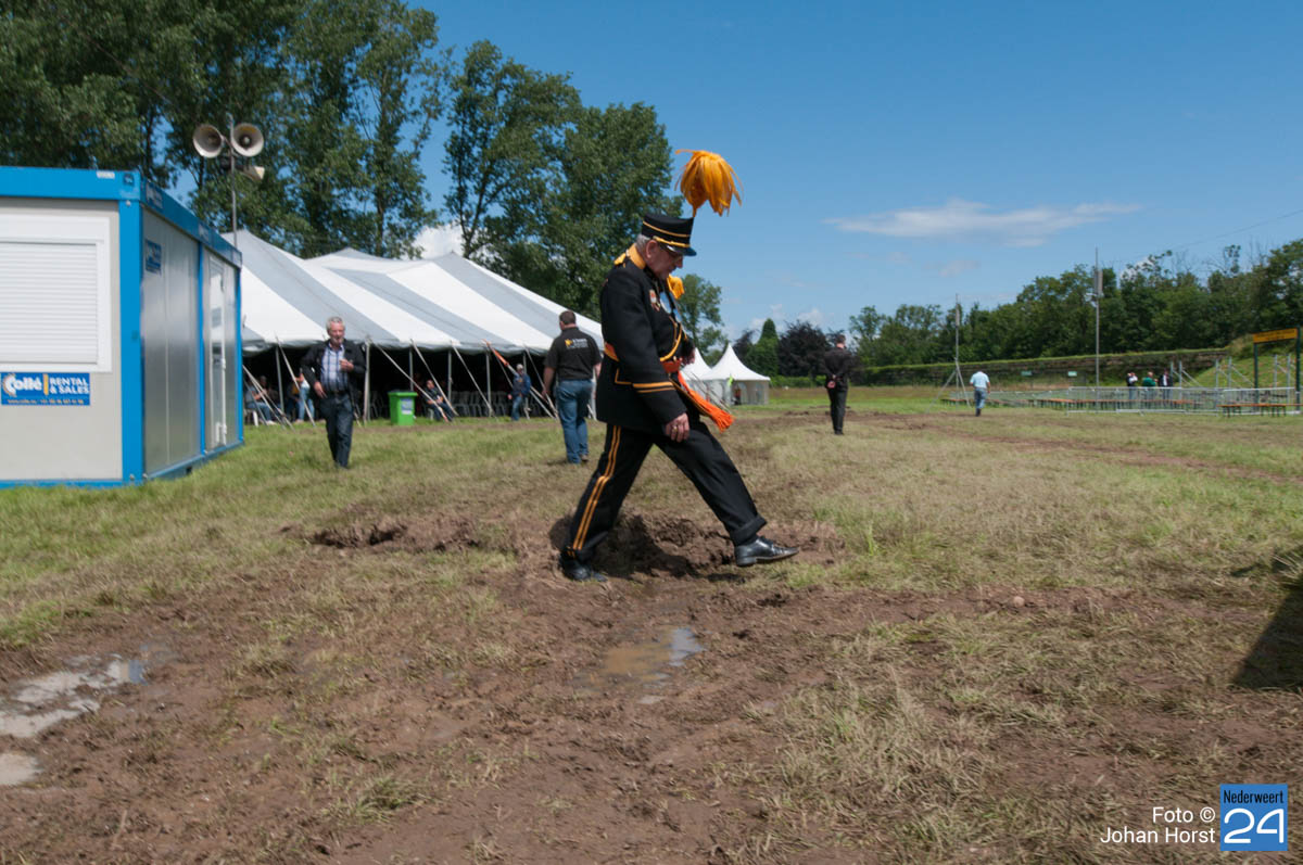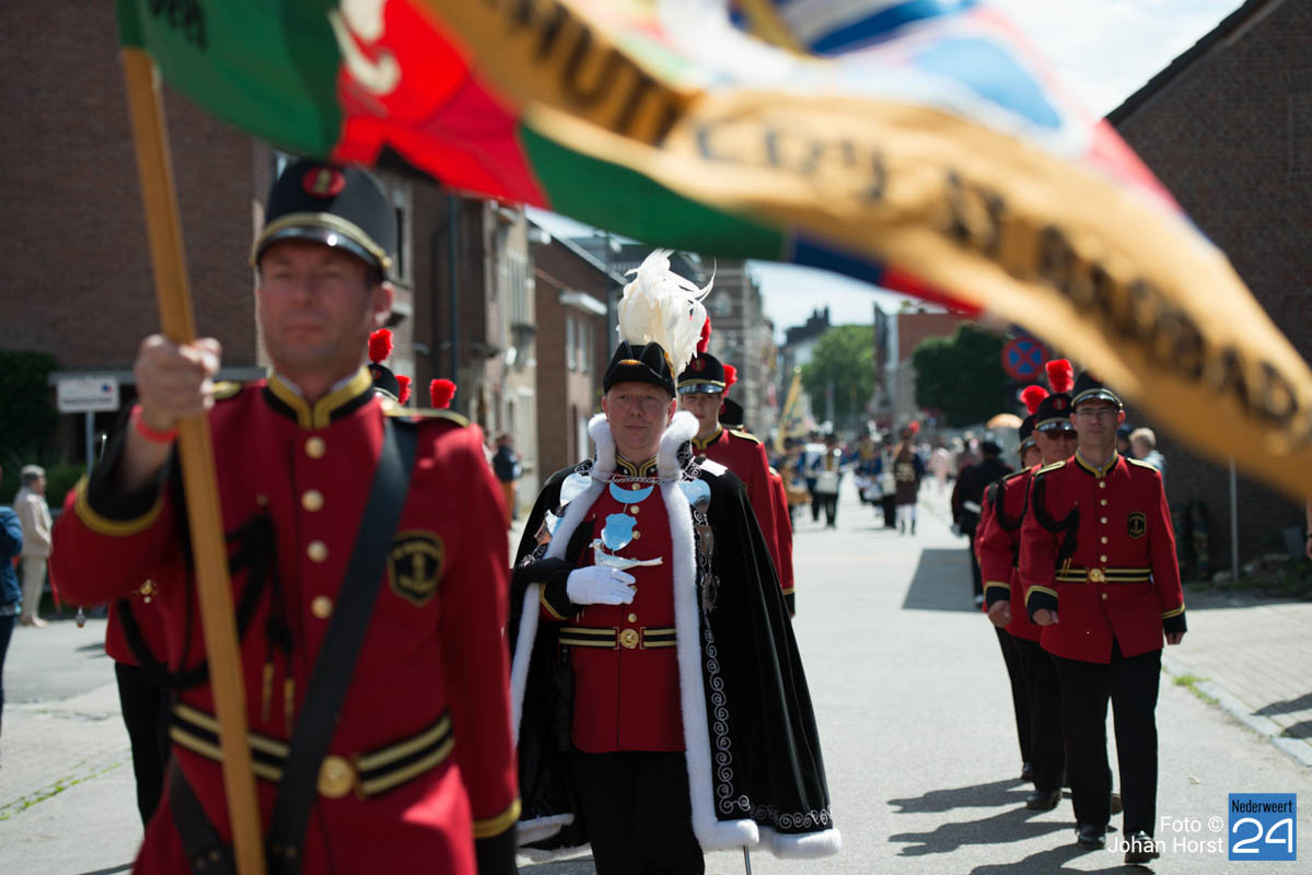 Na de openingsceremonie, die werd bijgewoond door gouverneur Reynders (B) en Bovens (NL), ging de traditionele optocht van start. De jury had vanwege de modder besloten om het onderste deel van de uniformen dit jaar niet mee te nemen in de jurering. Na een lange maar zonnige middag klonk even voor vijf uur het eerste schot op de wei en was het kavelen begonnen. In de eerste ronde vielen heel veel schutterijen af en strijden Volgende week nog 30 schutterijen voor d’n Um.