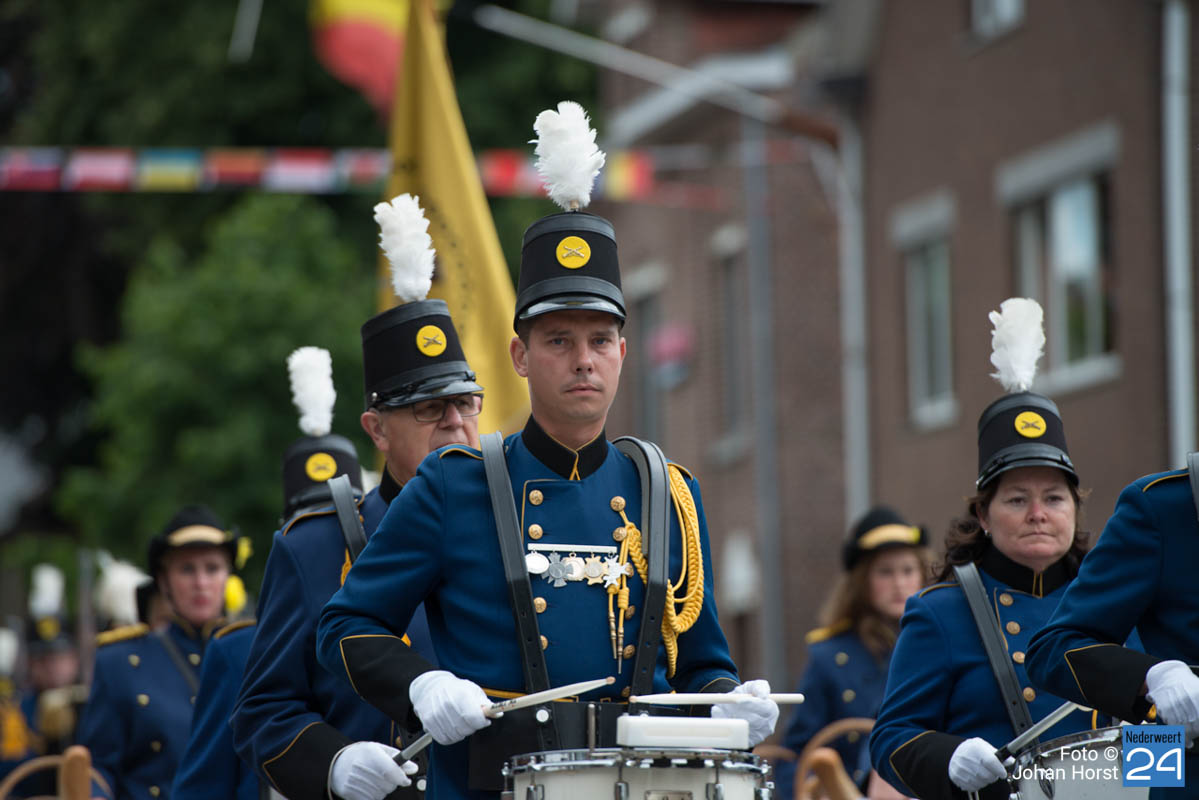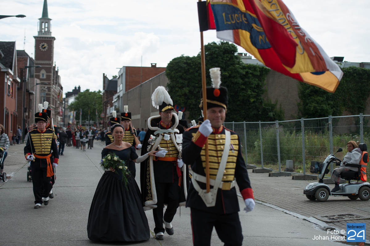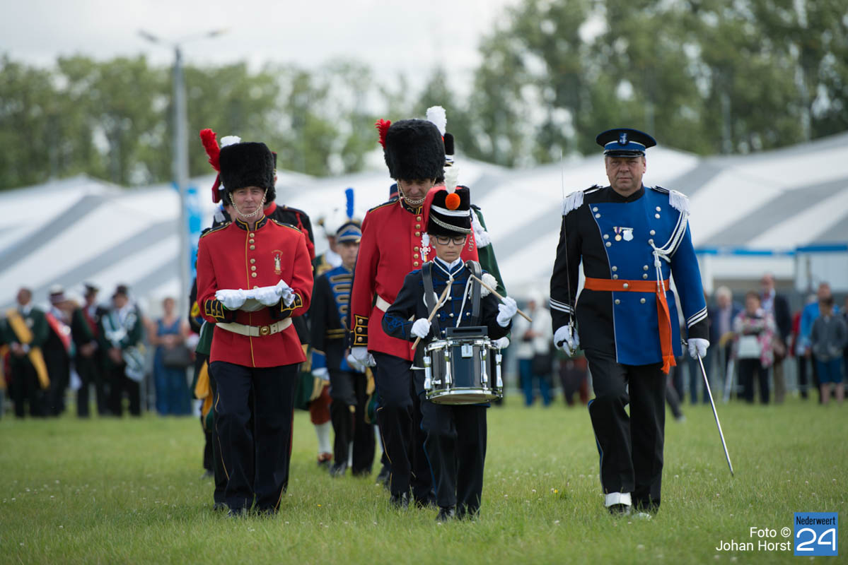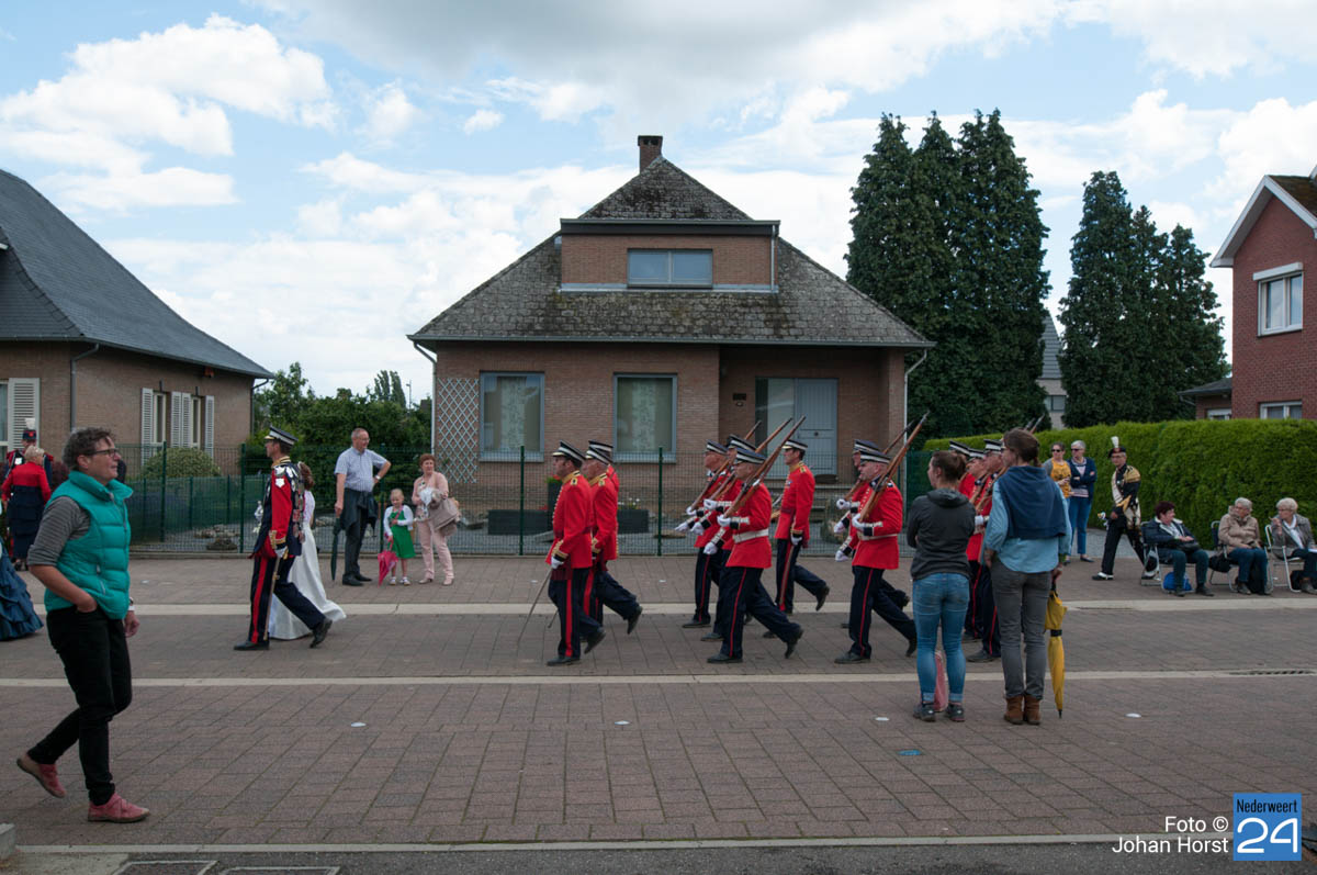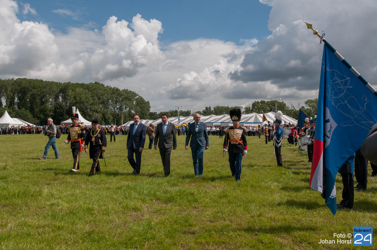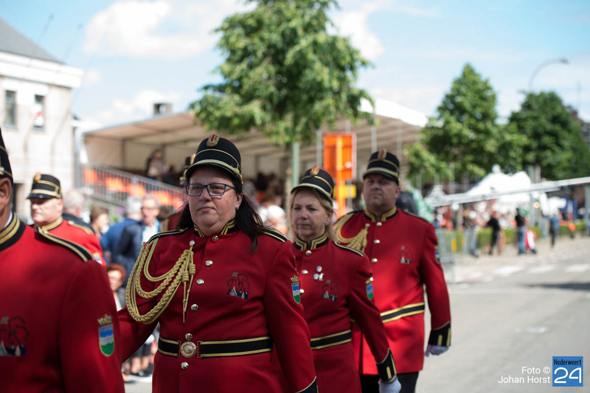 Na de openingsceremonie, die werd bijgewoond door gouverneur Reynders (B) en Bovens (NL), ging de traditionele optocht van start. De jury had vanwege de modder besloten om het onderste deel van de uniformen dit jaar niet mee te nemen in de jurering. Na een lange maar zonnige middag klonk even voor vijf uur het eerste schot op de wei en was het kavelen begonnen. In de eerste ronde vielen heel veel schutterijen af en strijden Volgende week nog 30 schutterijen voor d’n Um.