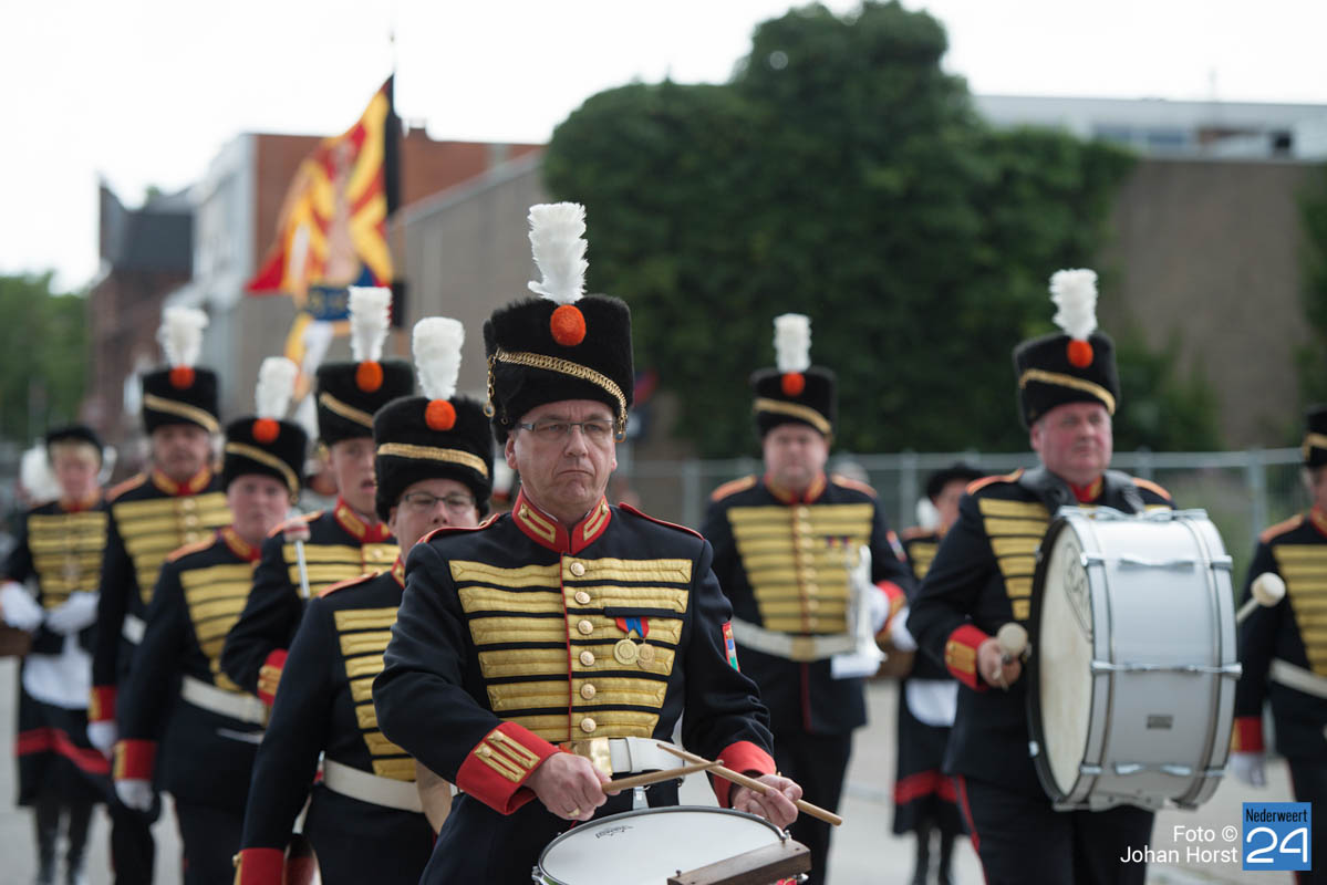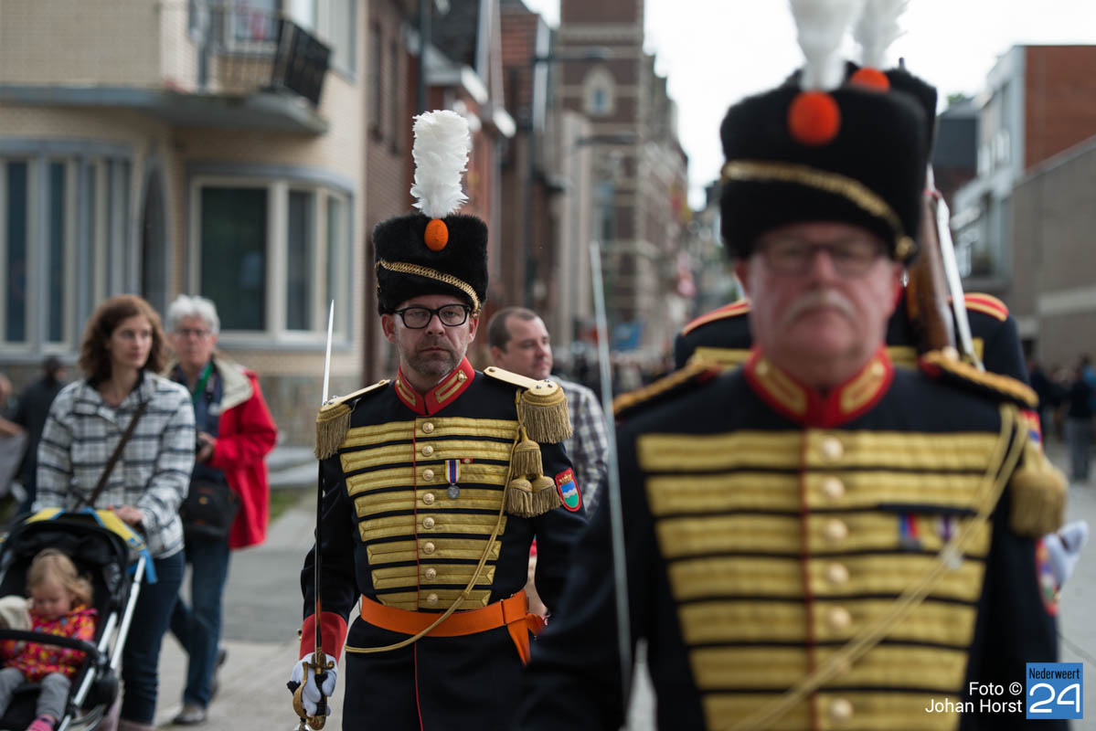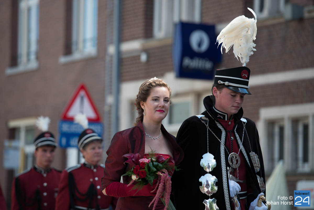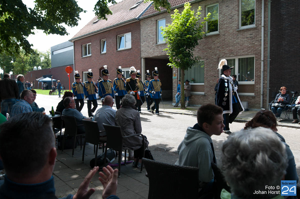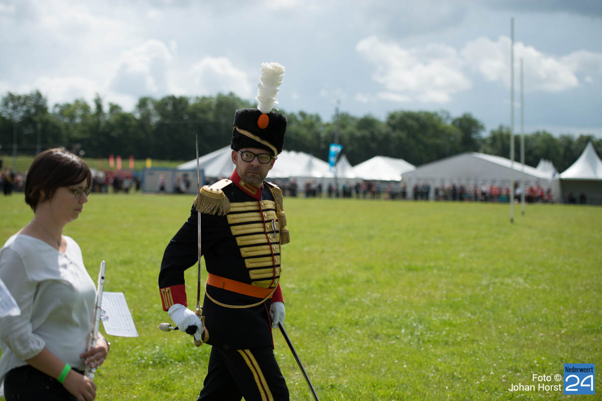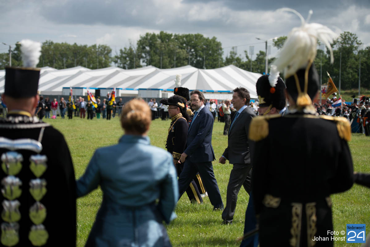 Na de openingsceremonie, die werd bijgewoond door gouverneur Reynders (B) en Bovens (NL), ging de traditionele optocht van start. De jury had vanwege de modder besloten om het onderste deel van de uniformen dit jaar niet mee te nemen in de jurering. Na een lange maar zonnige middag klonk even voor vijf uur het eerste schot op de wei en was het kavelen begonnen. In de eerste ronde vielen heel veel schutterijen af en strijden Volgende week nog 30 schutterijen voor d’n Um.