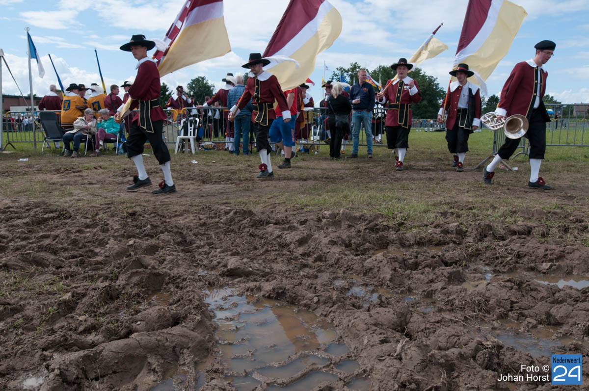 Zondag stond Maasmachelen in het teken van de OLS 2016, nat maar zonnig. Vanwege het natte weer van de afgelopen weken werd het een slagveld zowel wat betreft het terrein als wat betreft het schieten. Van de vier Nederweerter schutterijen is alleen Schutterij St Antonius nog in de race. Vanuit Midden-Limburg mogen volgende week nog 18 schutterijen terug komen. België heeft nog maar twee kanshebbers. Na drie kavelrondes zijn 115 schutterijen gesneuveld.