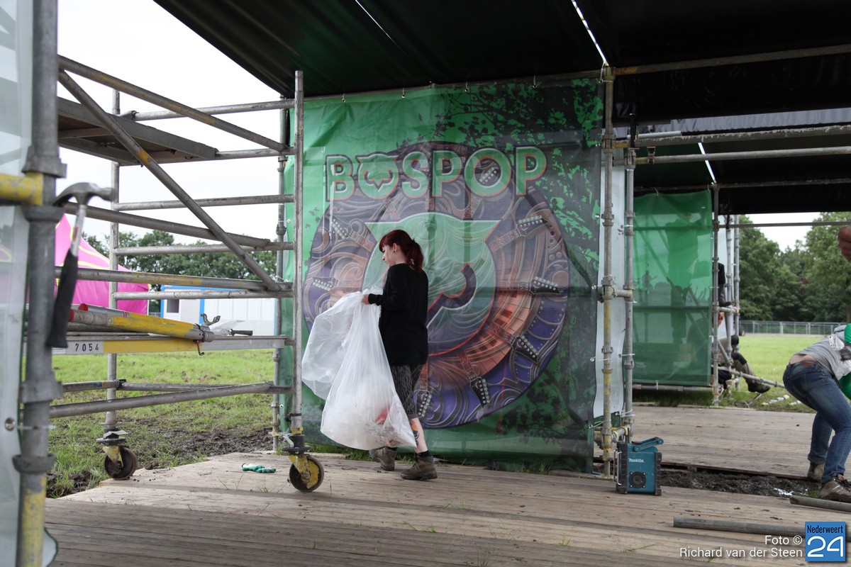 Extra aandachtspuntje blijft het water en de modder die het met zich meebrengt. Regelmatig komen leveranciers vast te zitten maar Bospop zal Bospop niet zijn om daar een antwoord aan te geven. Een rupsvoertuig biedt uitkomst om met gemak alles weer rijdend te krijgen. Extra vloerplaten worden gelegd en aanhangers met houtsnippers worden constant aangevoerd. Het kan niet anders of Bospop 2016 word weer een groot succes.