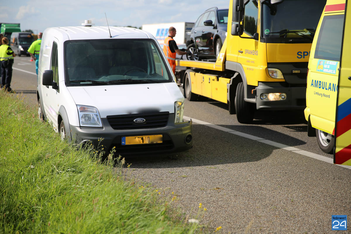 Door nog onbekende oorzaak is een auto achterop zijn voorganger gereden. Hierbij raakten beide auto’s flink beschadigd. Het ambulancepersoneel heeft beide bestuurders onderzocht maar niemand hoefde mee naar het ziekenhuis. De afrit was enige tijd dicht, maar is inmiddels weer open.