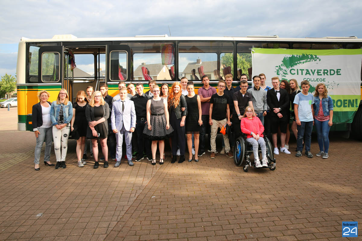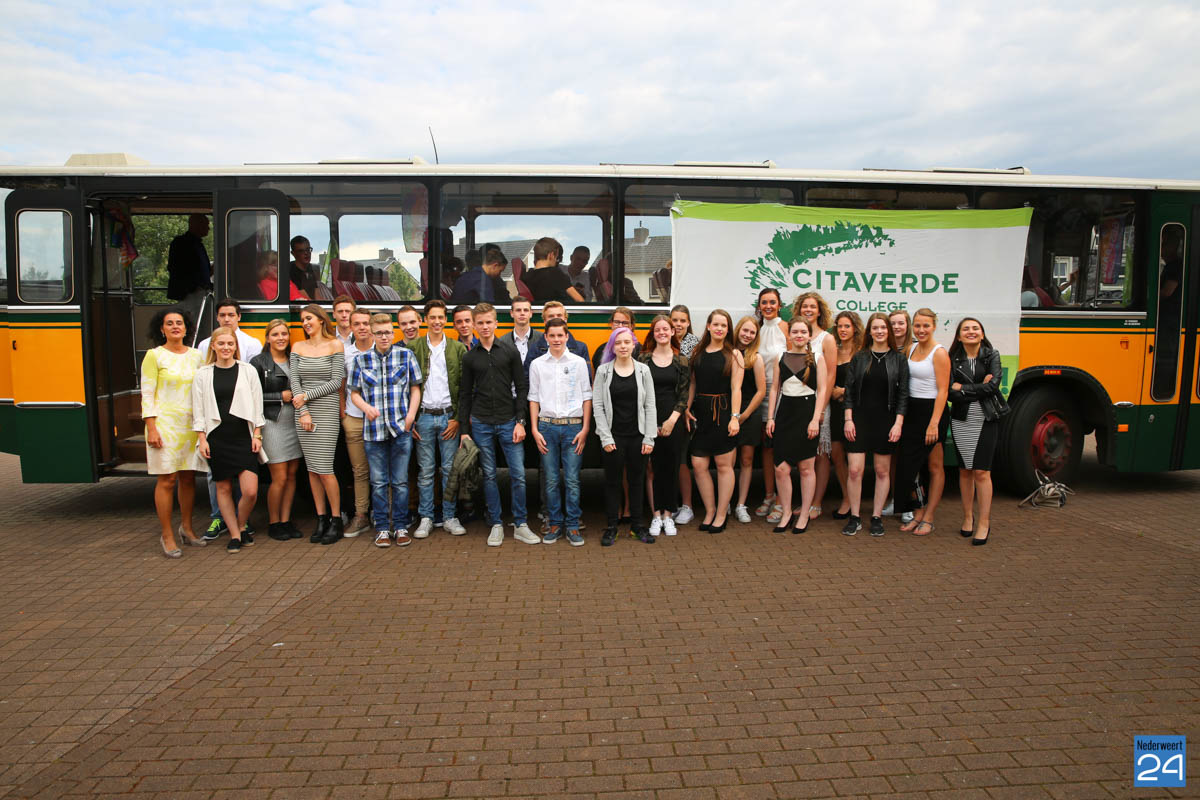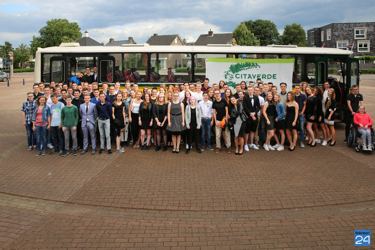 Diploma-uitreiking Citaverde Nederweert 2016-9Donderdagavond hebben alle geslaagde eindexamenkandidaten van het Citaverde in Nederweert hun diploma in ontvangst mogen nemen. Om 18:30 uur verzamelden de leerlingen zich bij het gemeentehuis van Nederweert om van daaruit met een oude “Veteraan Autobus” naar de school te rijden. Daar werden ze door ouders, familie en vrienden en bekenden opgewacht.