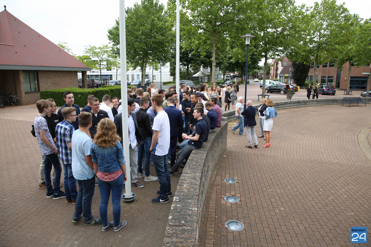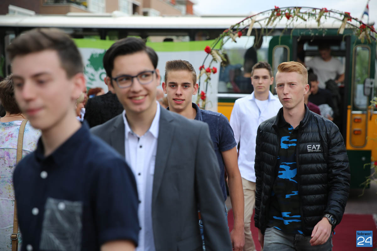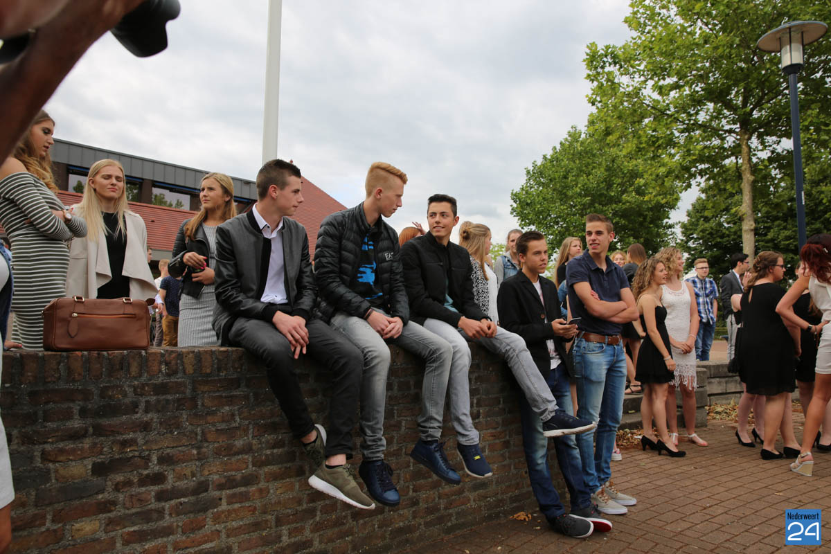 Na een warm onthaal en de nodige foto’s en selfies werd iedereen door locatiedirecteur Eric Bouwman welkom geheten in de aula van de school. De drie klassen hadden dit jaar goed gepresteerd. 96% is geslaagd. “Van de 91 leerlingen zijn er 87 geslaagd en 5 daarvan zelfs cum laude,  een mooie prestatie waar we trots op mogen zijn,” zegt een trotse directeur Na de officiële handeling kregen alle leerlingen hun diploma uitgereikt en kon het feest beginnen. Proficiat!