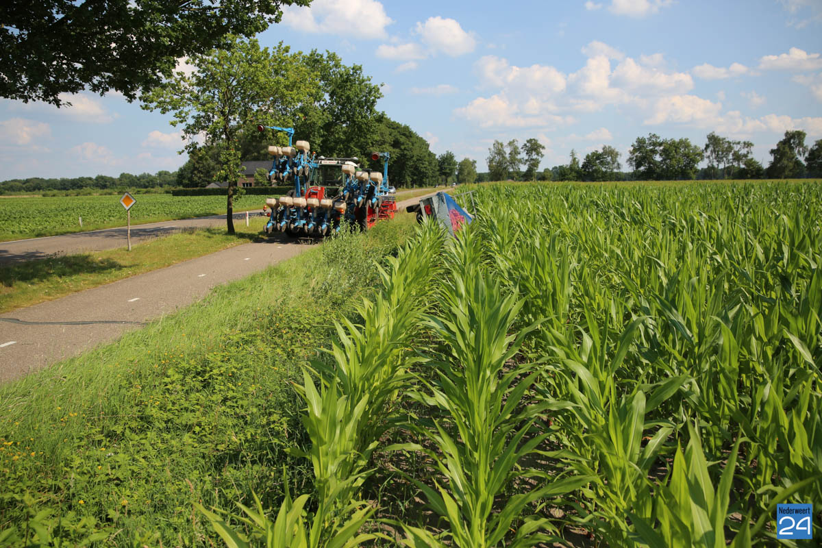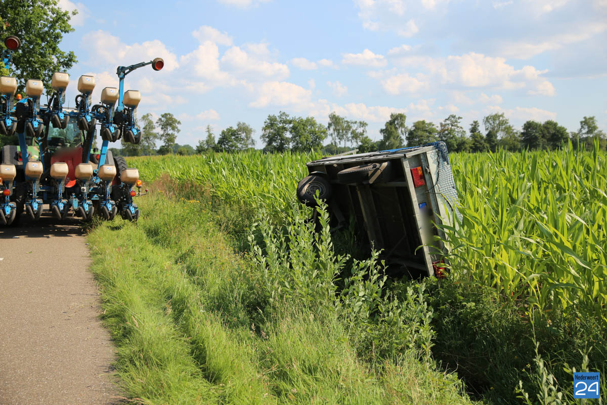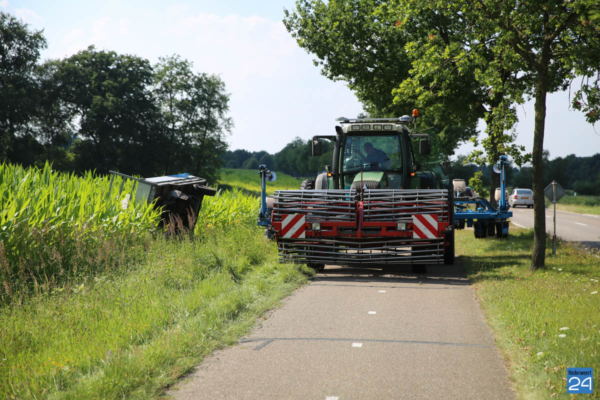 Maandagmiddag is een tractor met zaaimachine zijn vierwielige aanhanger verloren op de Houtsberg in Nederweert-Eind.