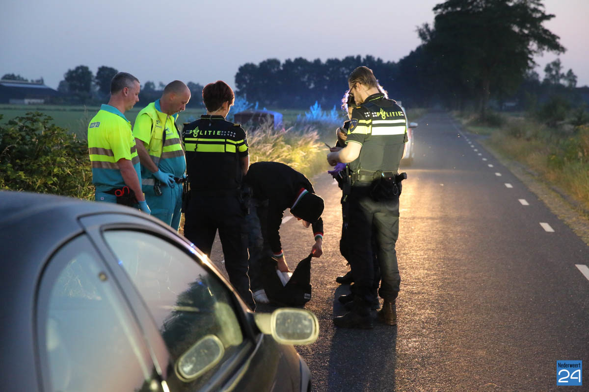 Ik zag hem op het laatste moment liggen en moest flink remmen om niet over hem heen te rijden” vertelde de melder. Toen hij uitstapte en naar hem riep werd de ‘slapende’ man niet wakker. Omdat hij het niet vertrouwde waarschuwde hij direct de hulpdiensten.