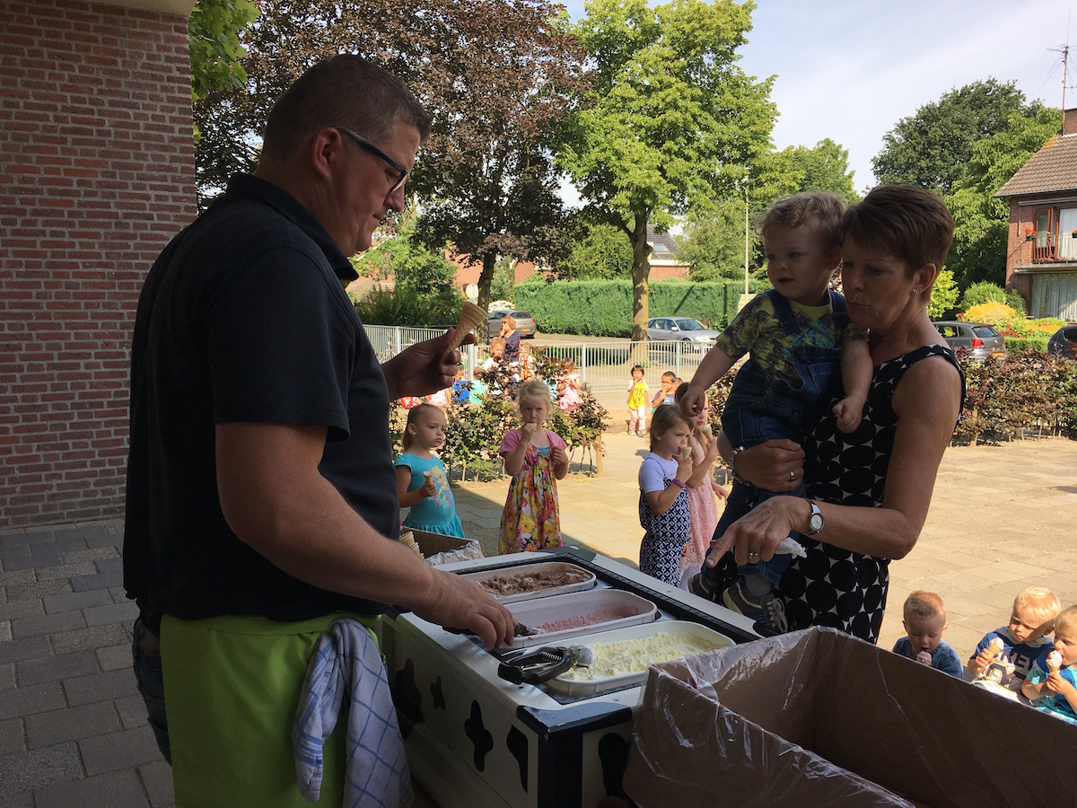 Tijdens een feestelijke dag is zij in het zonnetje gezet. De kinderen hadden samen een feestlied ingestudeerd en met behulp van Judith’s Dance Point leerden alle groepen een eigen dans. Het lied en de dansen werden tijdens de feestelijke middag aan juf Tiny en haar gasten vertoond. Het was een zonnige en gezellige dag, met een hapje, een drankje én een dikke ijs voor iedereen.