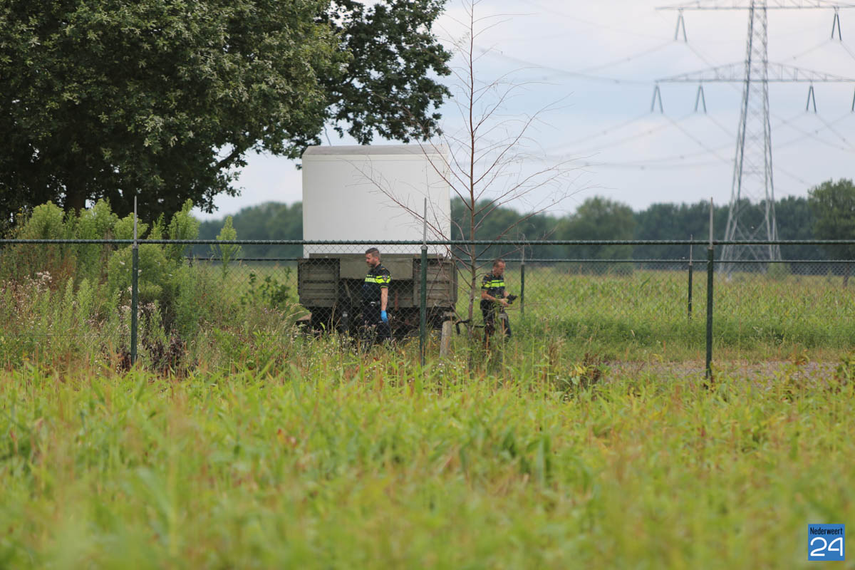 Op het terrein, helemaal achteraf, staan twee stallen waar ooit kalveren in stonden. Er staat een flink hekwerk omheen wat de locatie verdacht maakt. De politie heeft met een tang sloten doorgeknipt om toegang te krijgen tot het pand. Er is niks aangetroffen.