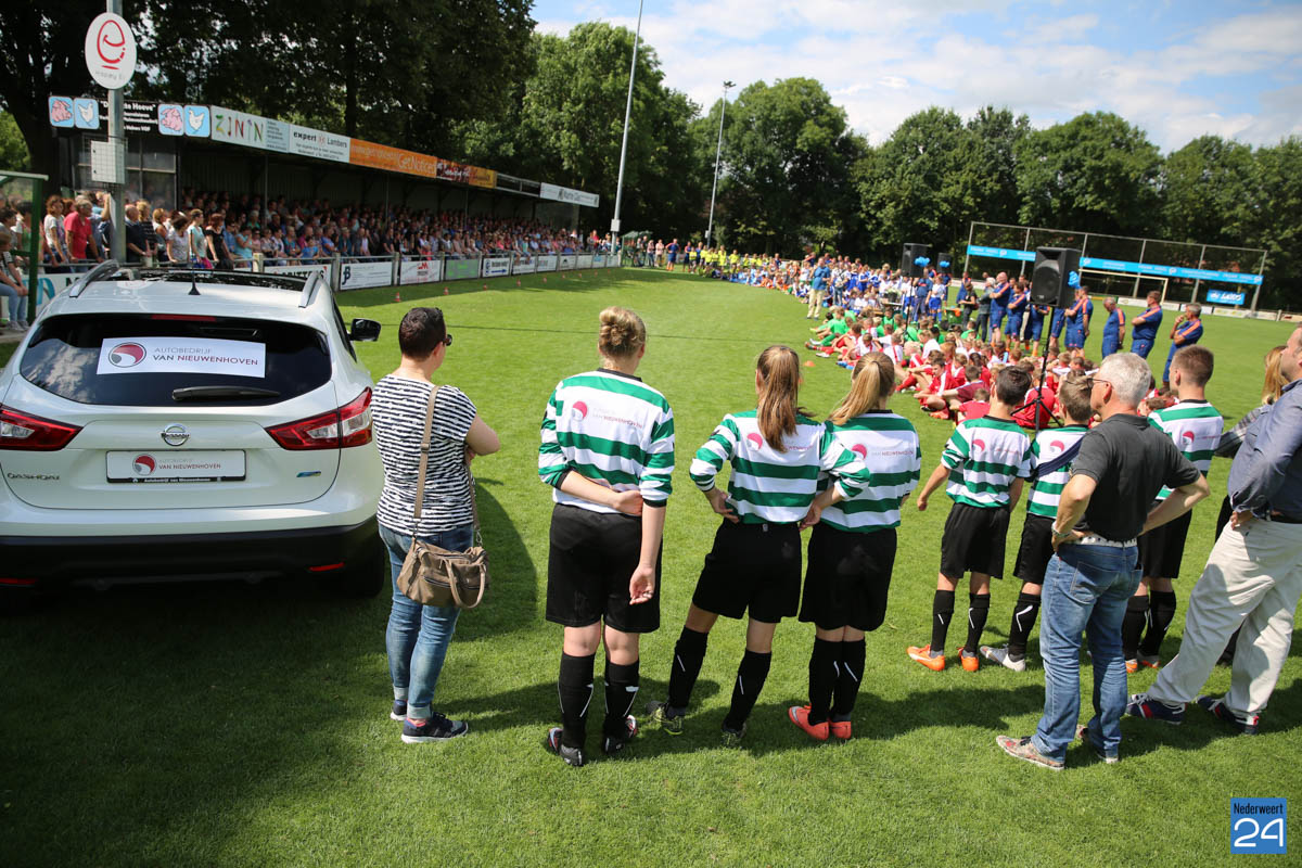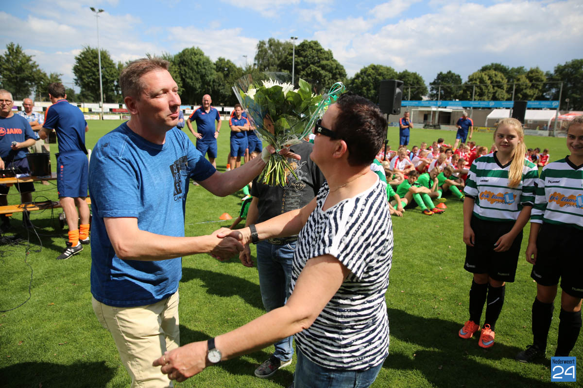 VSN Voetbaldagen Eindse Boys Nederweert-Eind-45Vrijdagmiddag zijn de jaarlijkse VSN Voetbaldagen bij de Eindse Boys in Nederweert-Eind voor de 16e keer succesvol afgesloten. Onder toeziend oog van heel veel papa’s en mama’s, opa’s en oma’s, familie, vrienden en bekende én onder toeziend oog van wethouder Hubert Mackus en Henk Geraats werden vooral de vrijwilligers bedankt voor de tijd en energie die ze er jaarlijks insteken. Voor sommige is het zelfs de 16e keer dat ze mee functioneren in de organisatie.