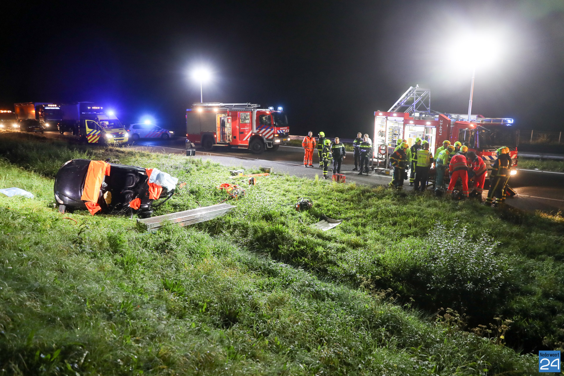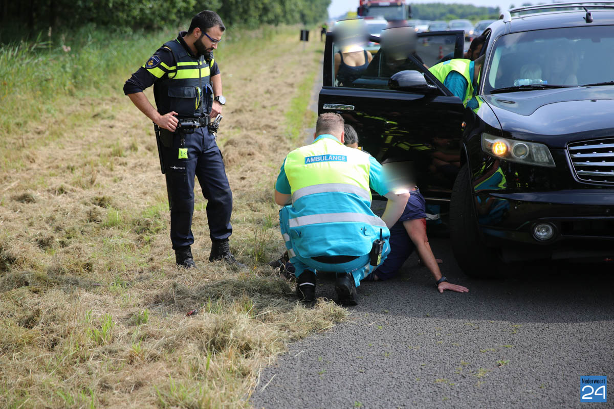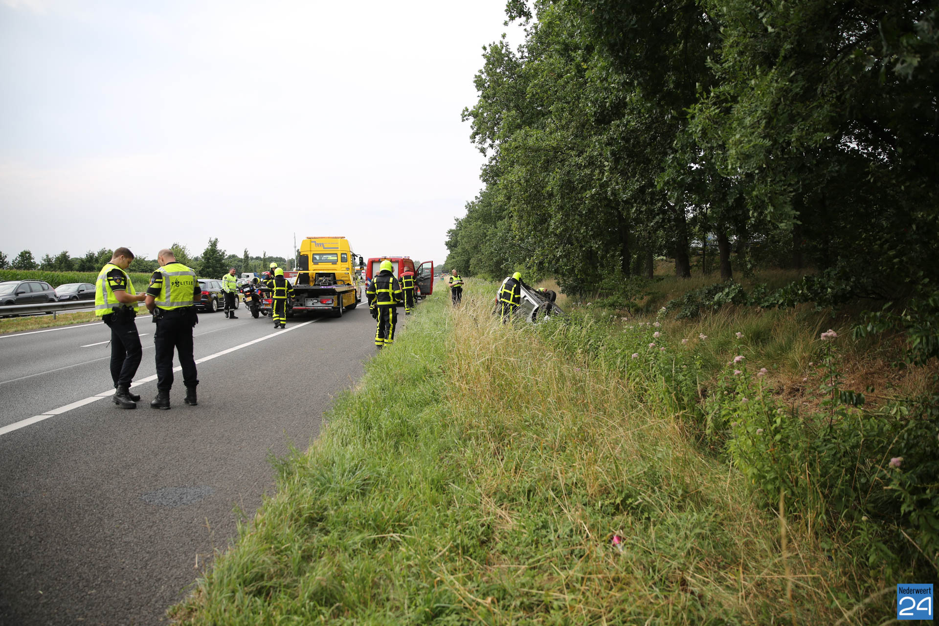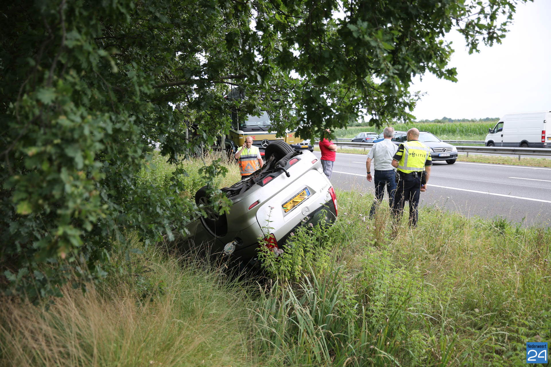 Zondagmiddag is een auto over de kop geslagen op de A2 ter hoogte van tankstation Ellerbrug bij Ell. In de auto zat een gezin met twee kleine kinderen.