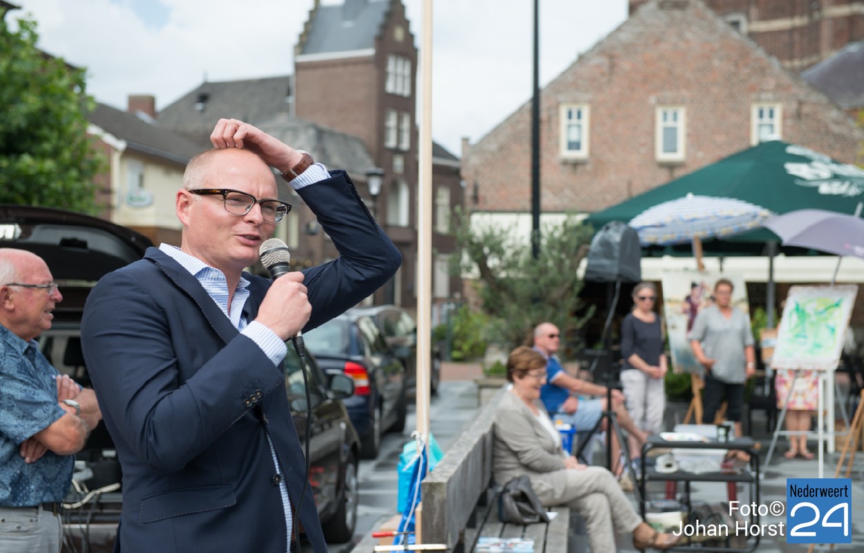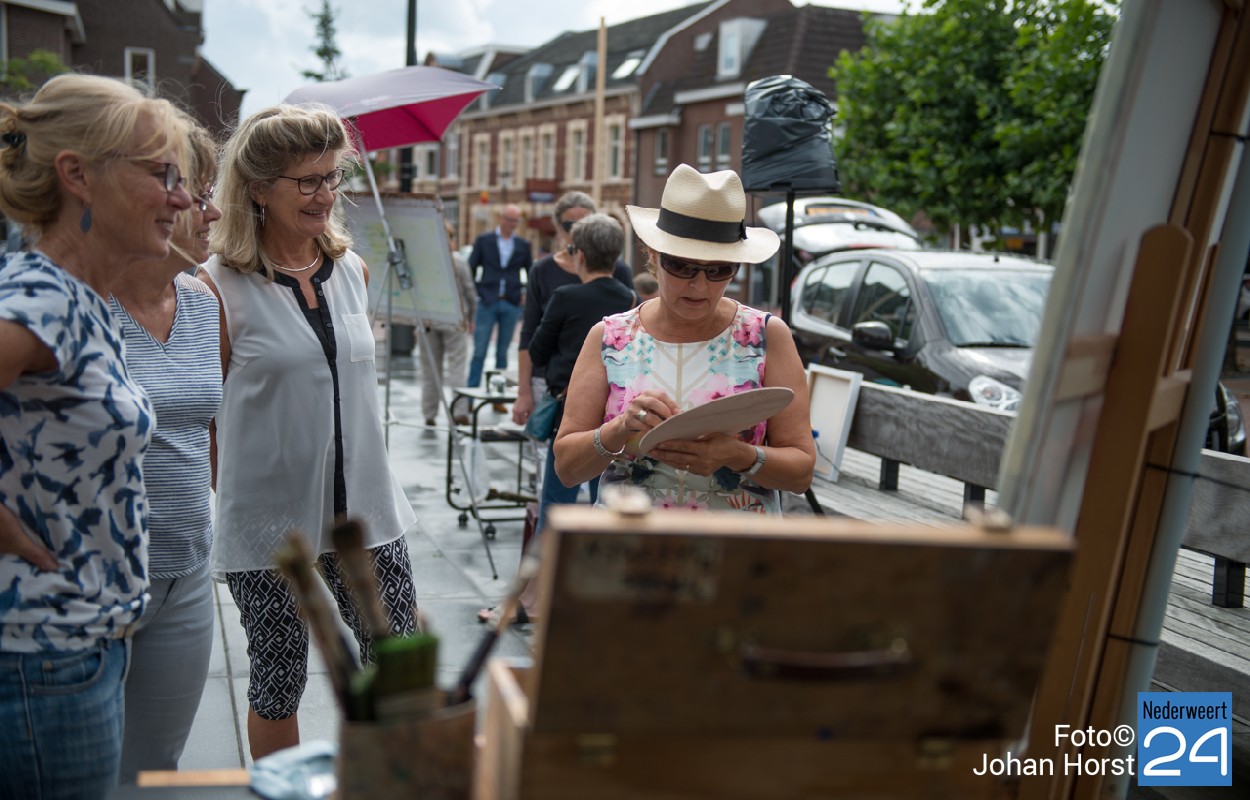 Opening KunstlintZaterdag vond de officiële opening plaats van “Kunstlint 2016” op het “Kunst- en Cultuurplein” Lambertushof in Nederweert. De etalages van de deelnemende ondernemers in Budschop en Nederweert zijn allemaal voorzien van een of meerdere kunstwerken die te zien blijven tot minstens 10 september. Wethouder Mackus prees het initiatief om samen te werken en verbindingen te leggen. Hij nam een eerste exemplaar van de catalogus in ontvangst en reikte vervolgens een exemplaar uit aan alle deelnemende kunstenaars