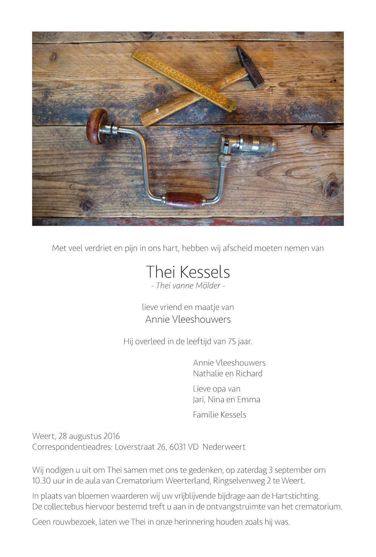 Familie, vrienden en bekenden, heel veel sterkte gewenst met het overlijden van Thei.