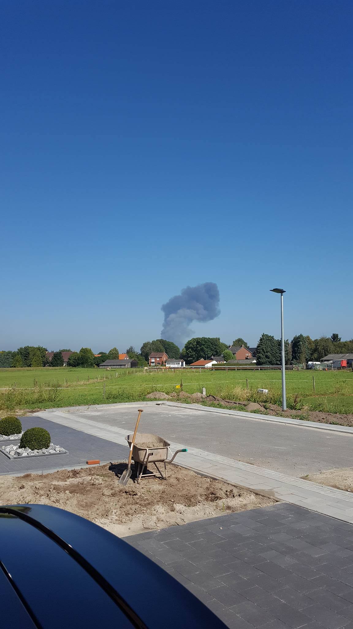 De brand ging gepaard met een flinke rookontwikkeling. De rookpluim was goed te zien in Nederweert (foto ingezonden door Maurice Houben).
