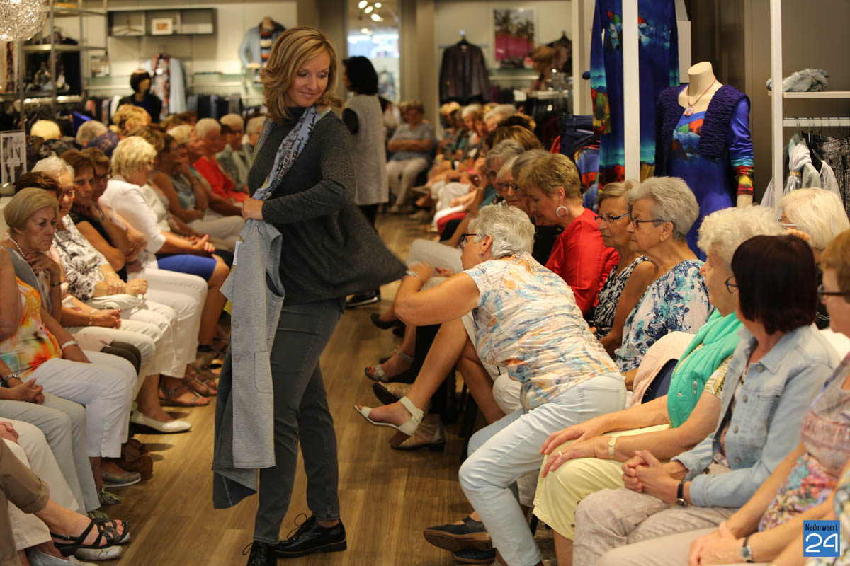Onder het genot van een kopje koffie konden de aanwezigen de nieuwe mode bewonderen. “We kunnen niet alles laten zien, maar vooral de opvallende nieuwe items showen we graag. Voor al de andere nieuwe kleding moet je toch echt even door de winkel snuffelen,” aldus Micheline Pleunis. “Ondanks het warme weer was het ook dit jaar weer ontzettend druk“.