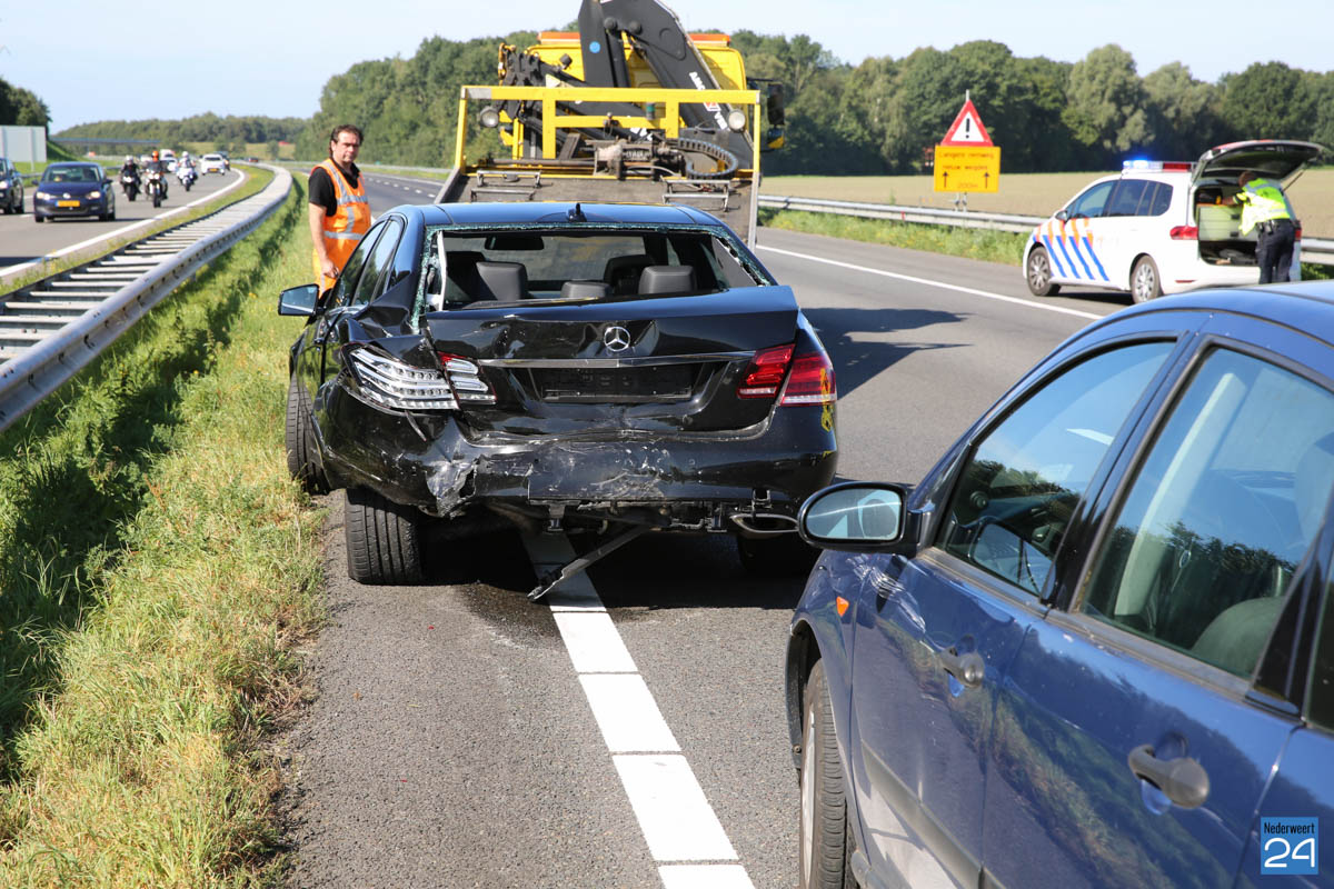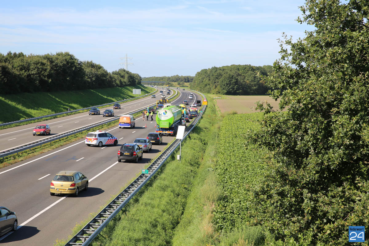 De weg werd tijdelijk afgesloten, maar inmiddels begint het verkeer weer op gang te komen.