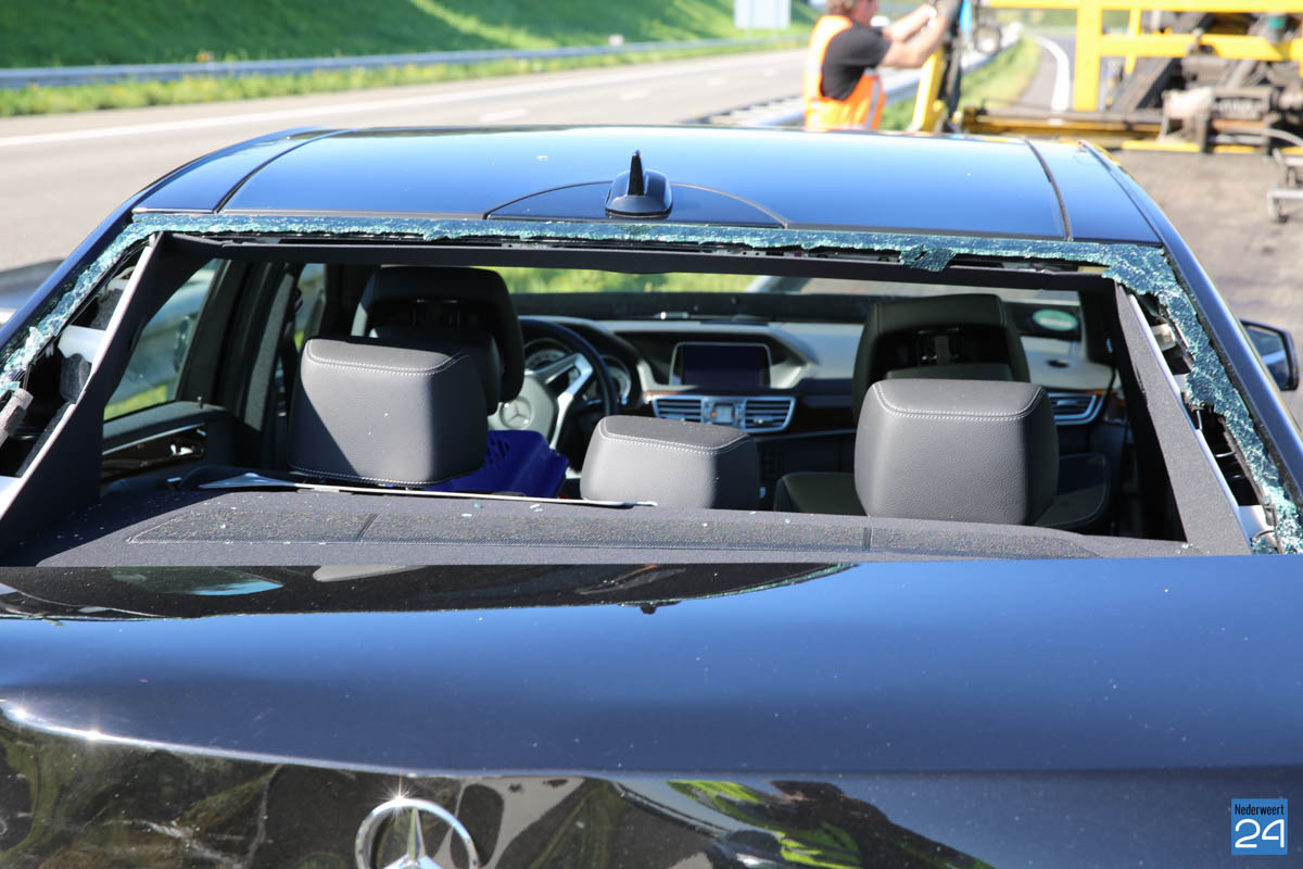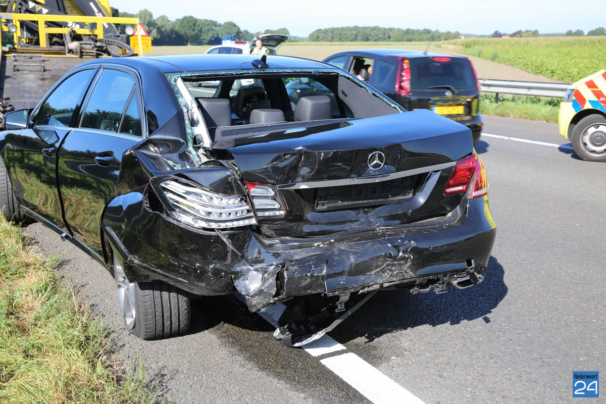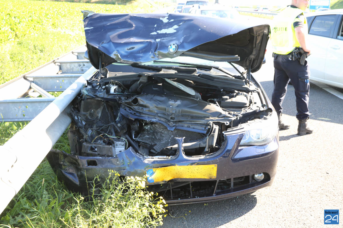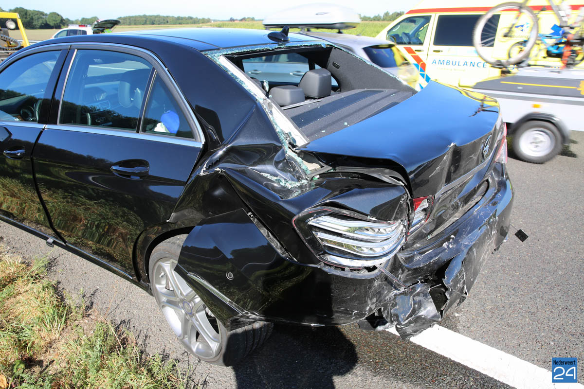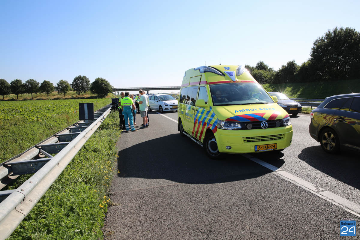 Ongeval A2 bij Nederweert-8Een overstekende hond zorgde zaterdagmorgen voor een ravage op de A2 bij Nederweert. Bestuurders van meerdere auto’s moesten hard op de rem en kwamen met elkaar in botsing. Twee personen raakten gewond en zijn met de ambulance naar het ziekenhuis gebracht.