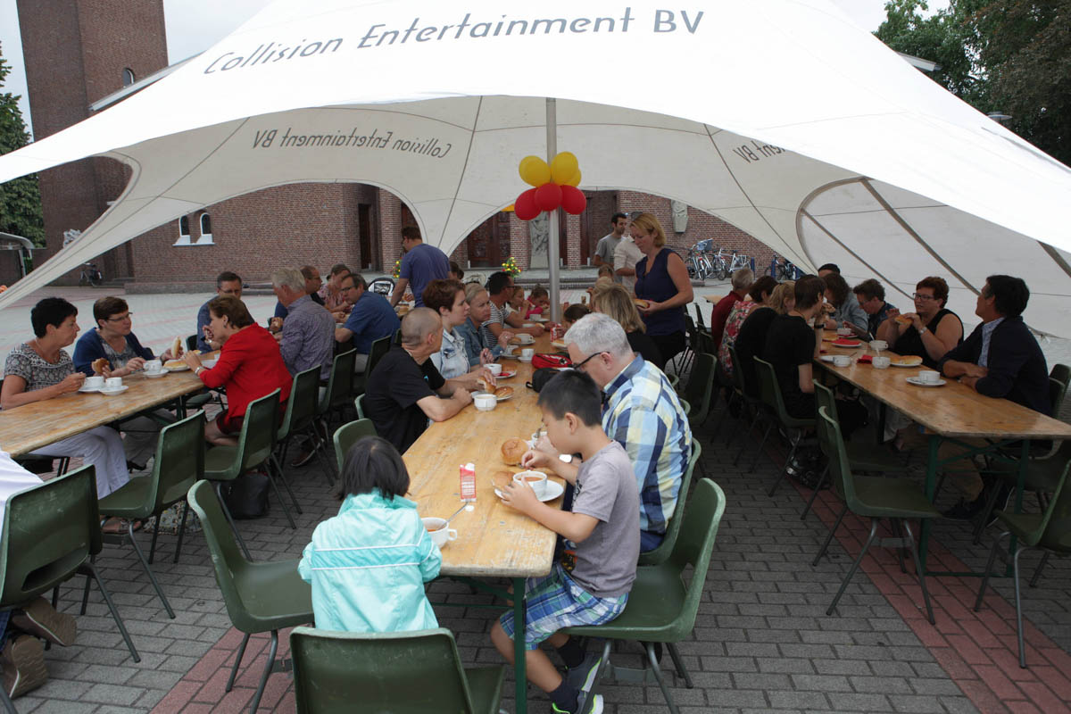 Zaterdag ging de buurtgenoten bij elkaar eten tijdens de activiteit “Kijkje in de keuken“. Zondag was de feestdag met om 11.00 uur een woord en gebedsdienst in de kerk in Nederweert-Eind en aansluitend een feest op het plein met natuurlijk muziek en lekker eten. Na de lunch waren er kinderspelen, een fototocht voor de jeugd en voor de volwassenen een wandeltocht met gids. Een gezellig weekend waar ze vol trots op terug kijken.