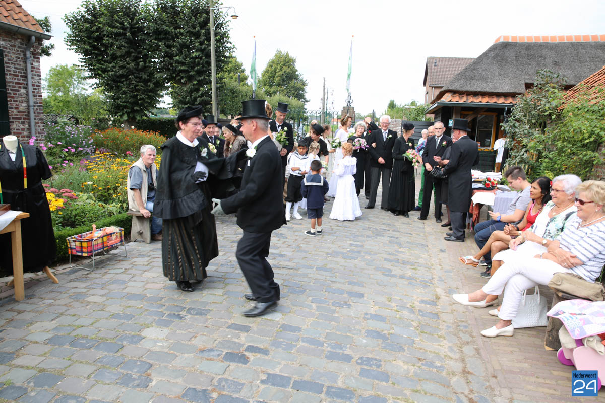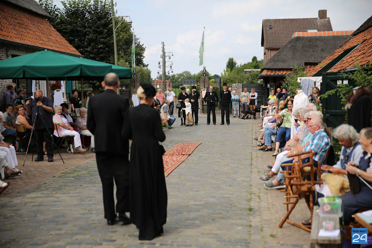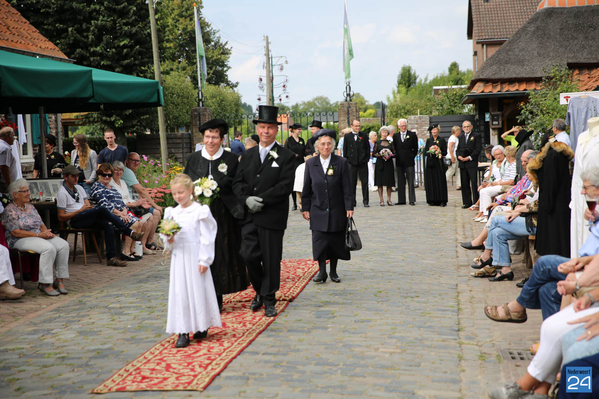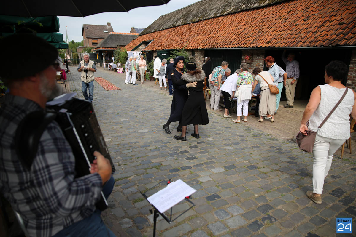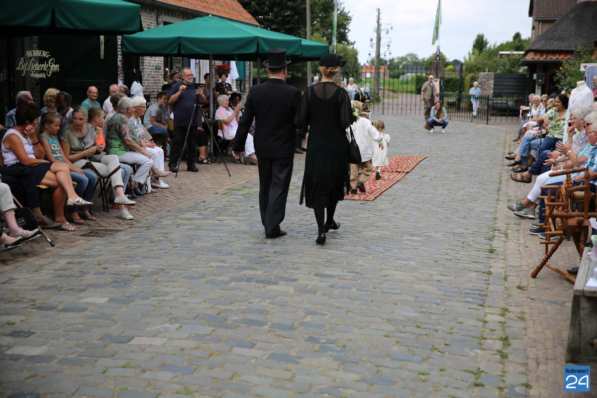 Op de binnenplaats van museum Eynderhoof kon je zondagmiddag genieten van een Historische Modeshow. De textielgroep van Eynderhoof liet zien hoe de klederdracht in Limburg er kort voor en na de oorlog uitzag. Hoe deftig men naar de kerk ging met allerlei hoeden.