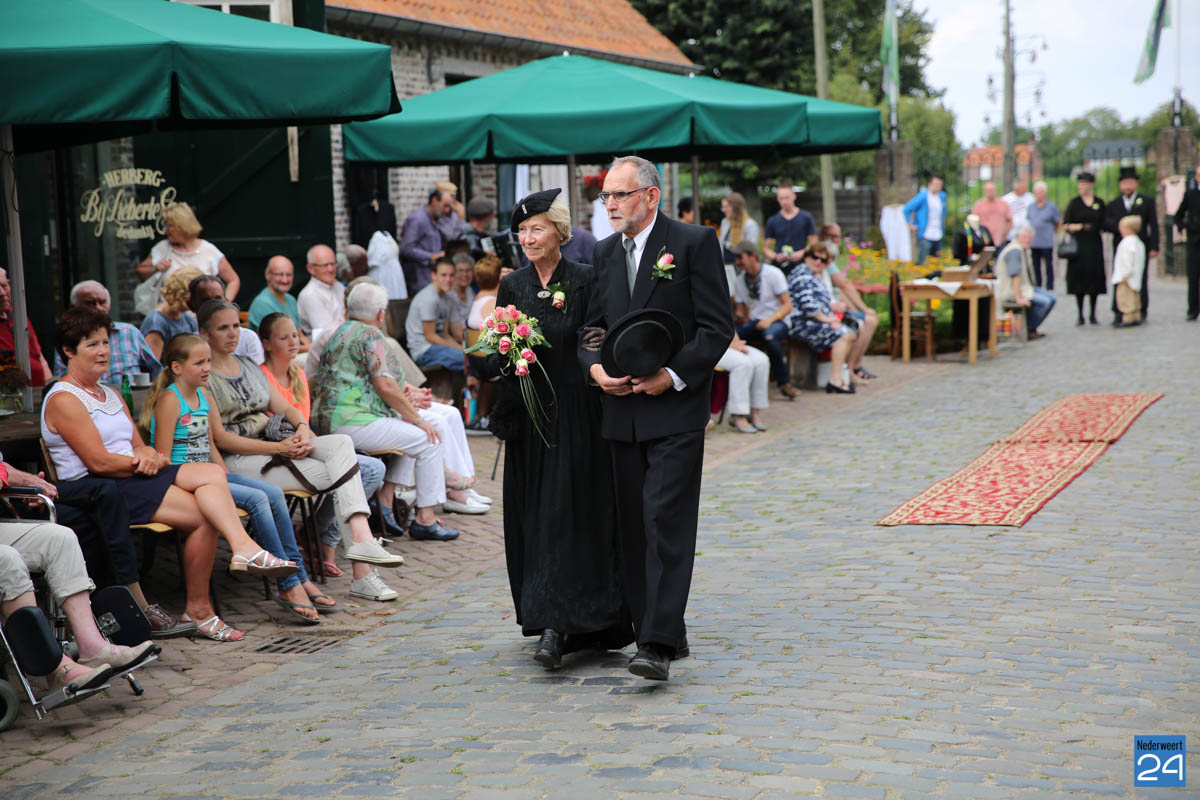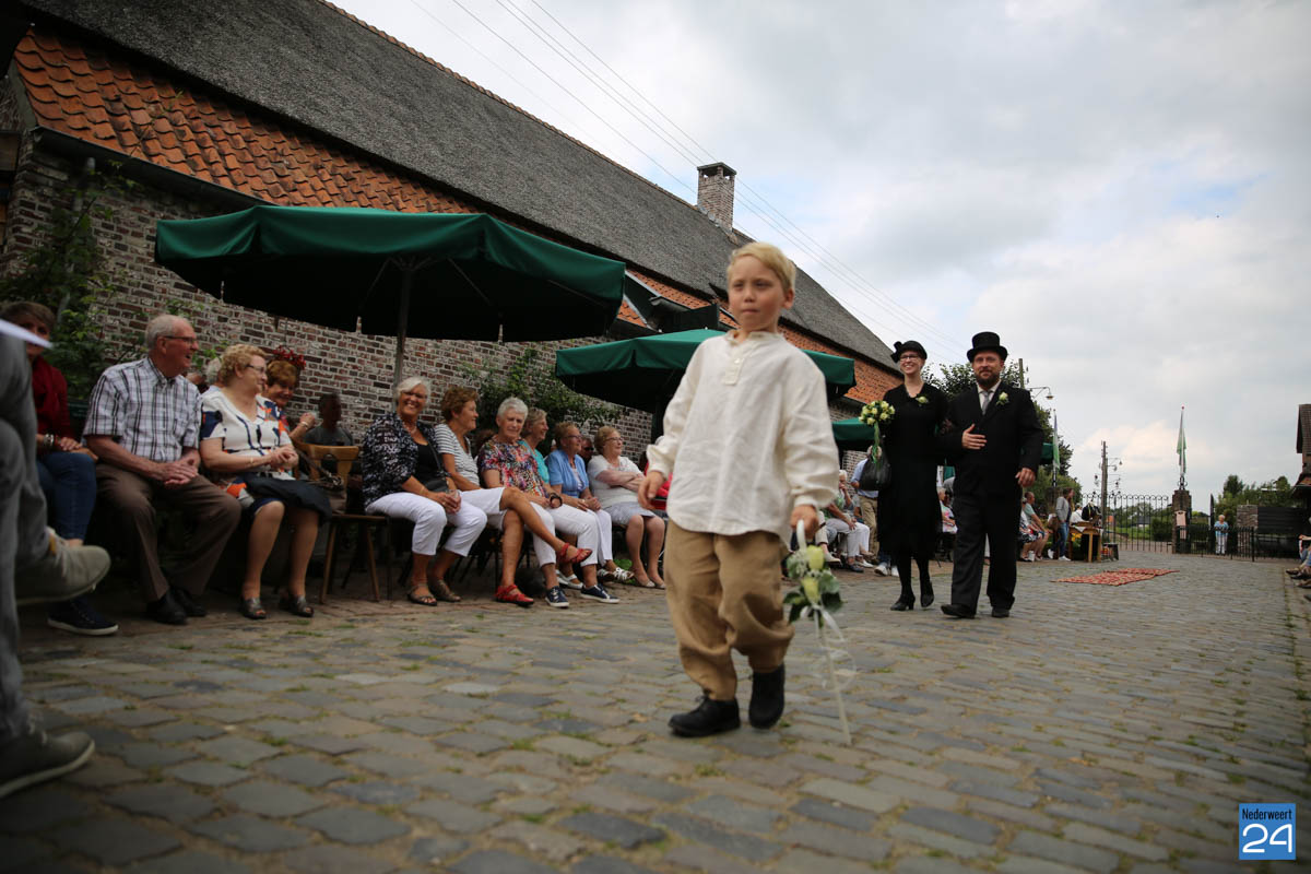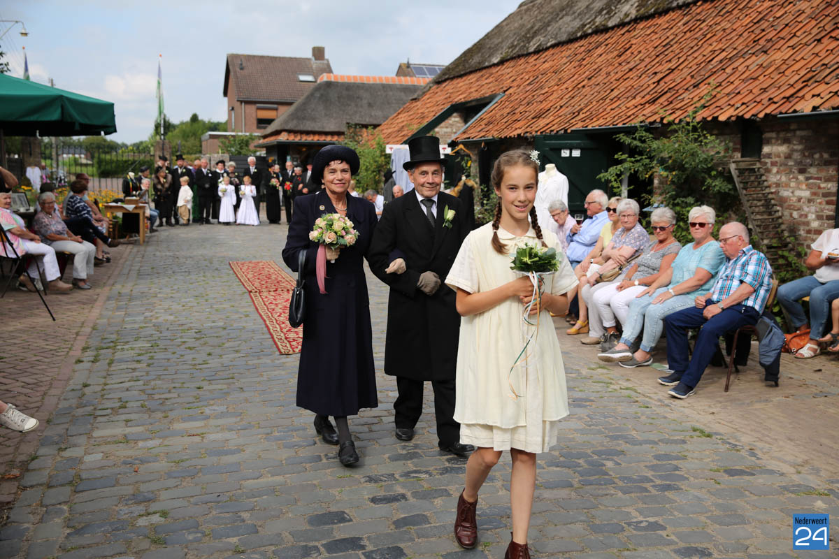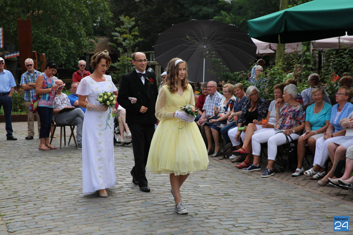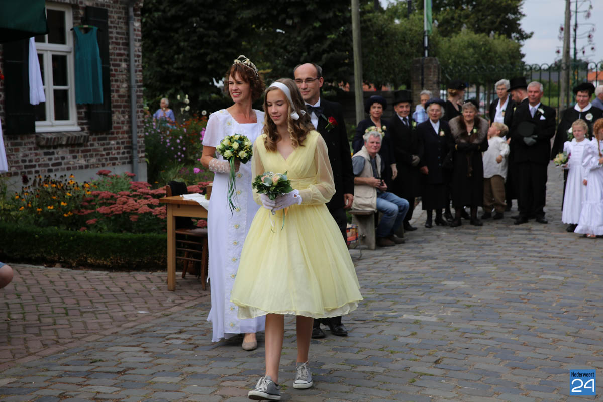 Op de binnenplaats van museum Eynderhoof kon je zondagmiddag genieten van een Historische Modeshow. De textielgroep van Eynderhoof liet zien hoe de klederdracht in Limburg er kort voor en na de oorlog uitzag. Hoe deftig men naar de kerk ging met allerlei hoeden.