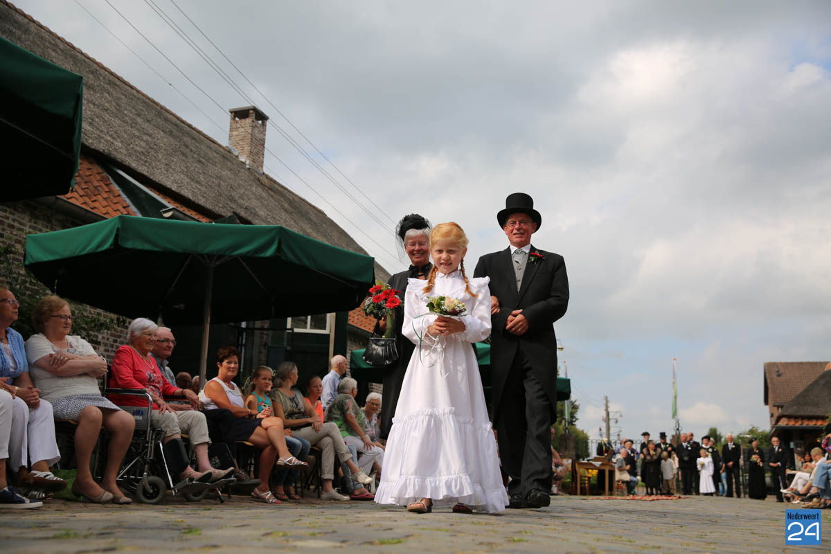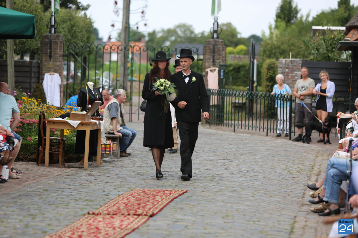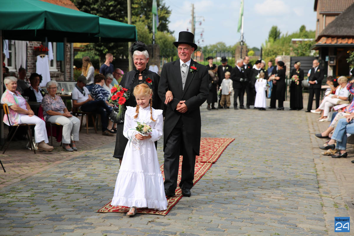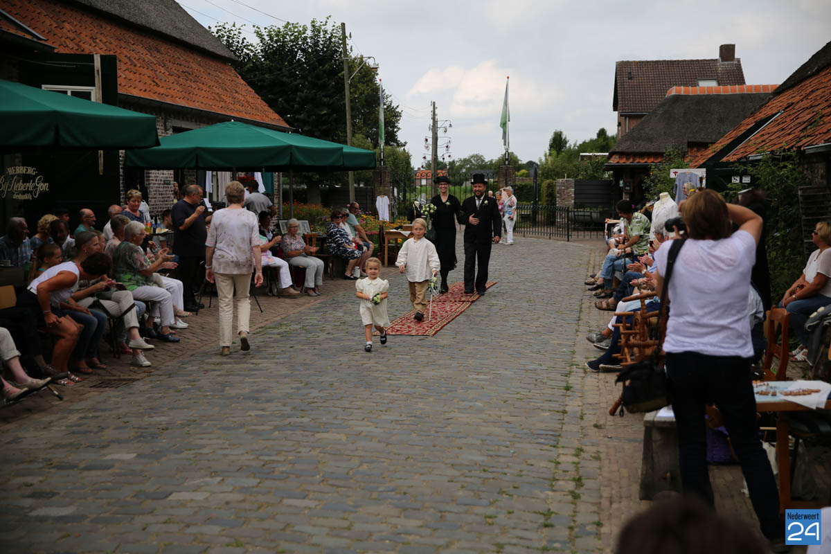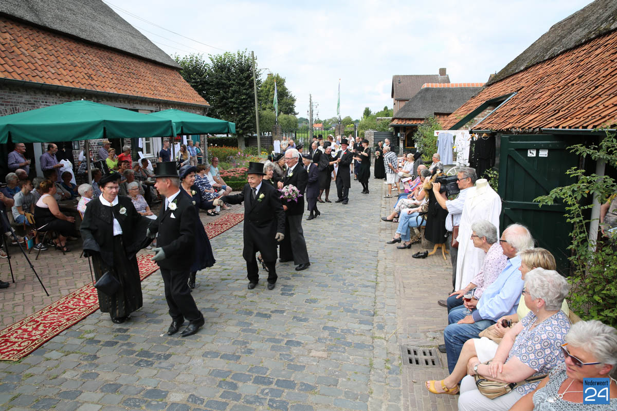 Op de binnenplaats van museum Eynderhoof kon je zondagmiddag genieten van een Historische Modeshow. De textielgroep van Eynderhoof liet zien hoe de klederdracht in Limburg er kort voor en na de oorlog uitzag. Hoe deftig men naar de kerk ging met allerlei hoeden.