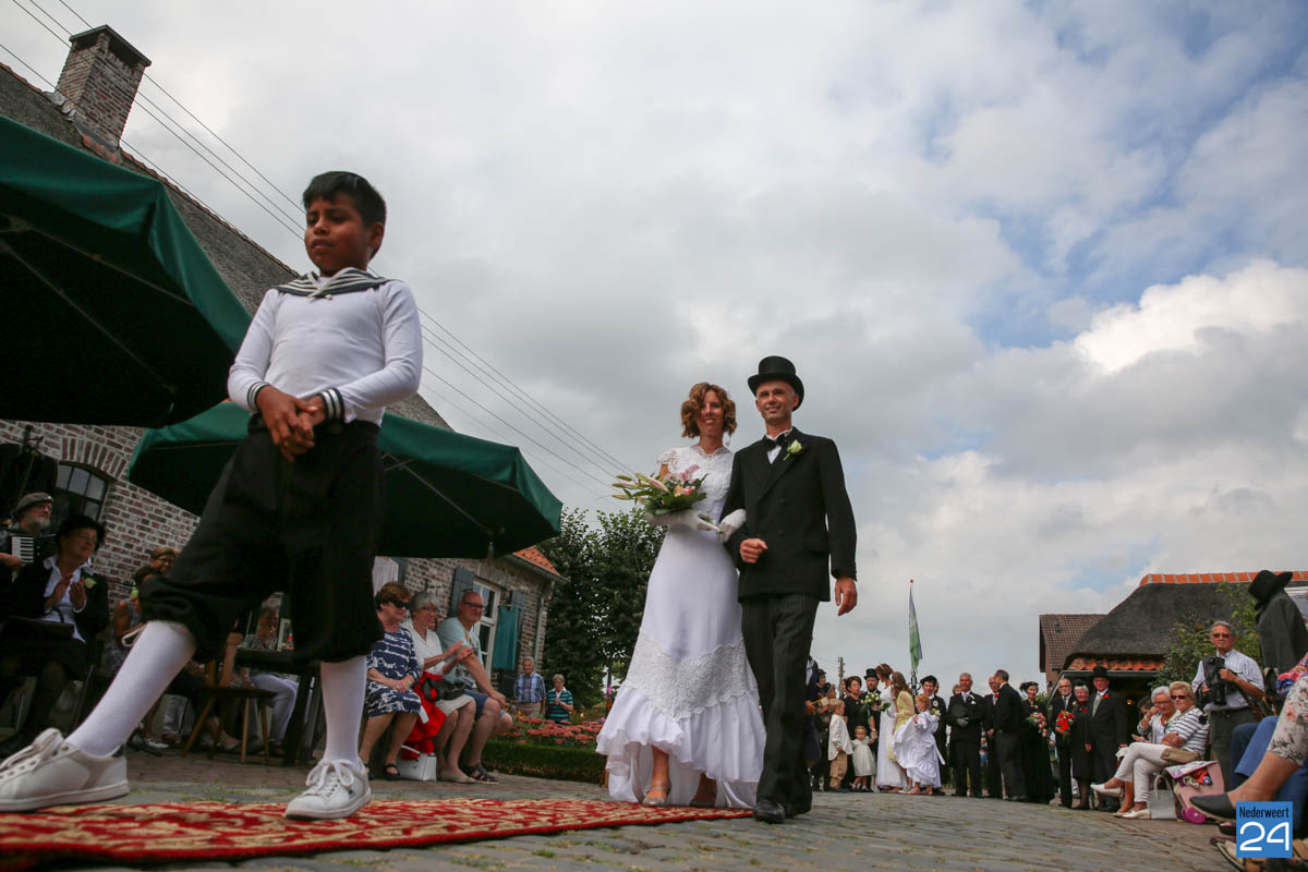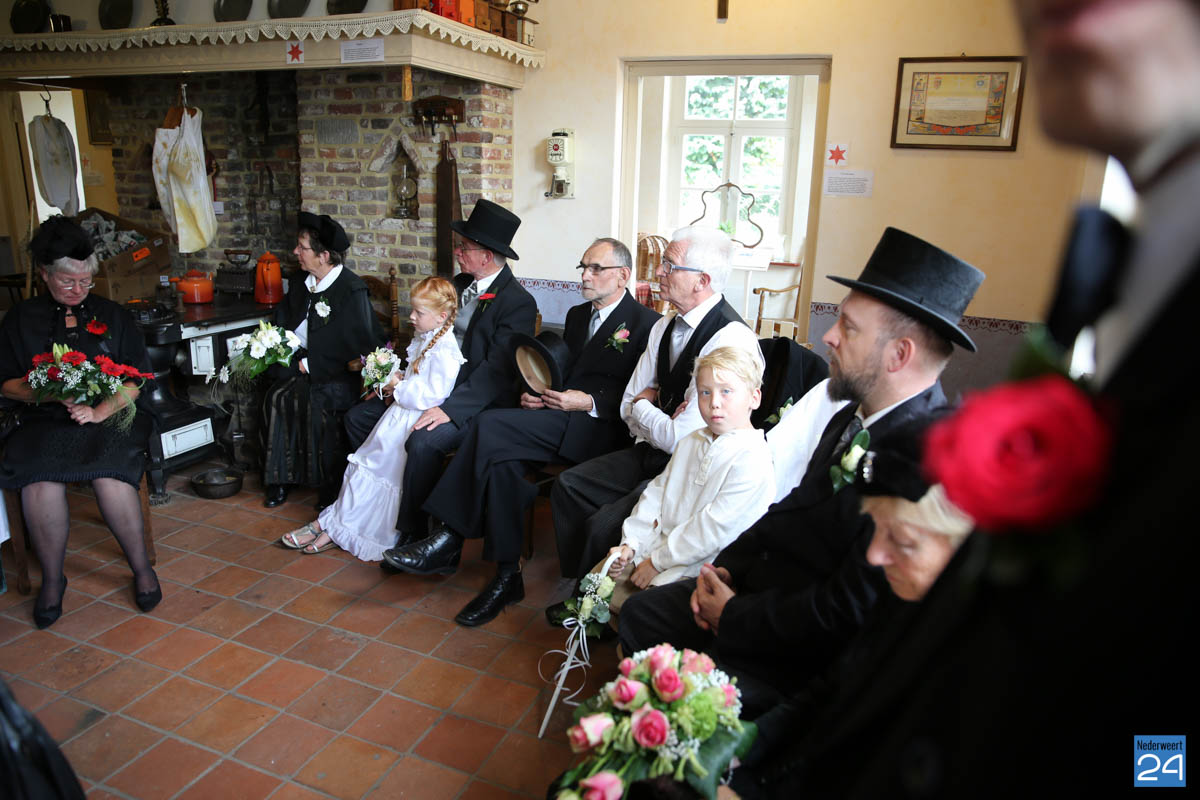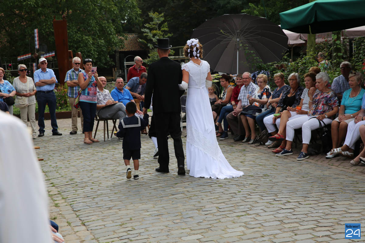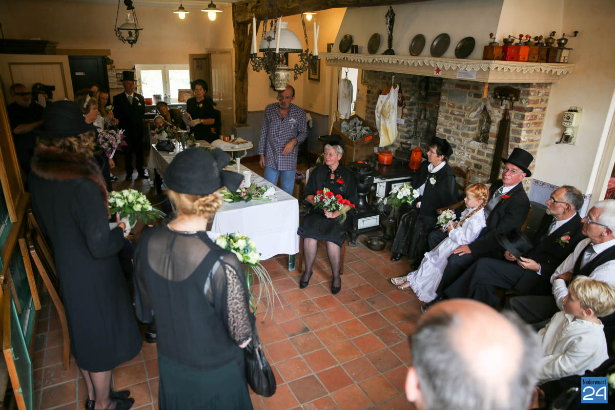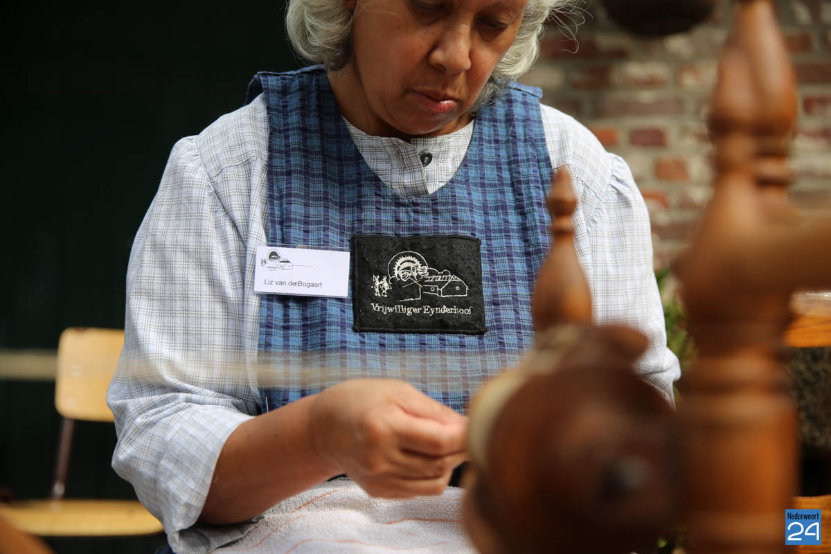 Op de binnenplaats van museum Eynderhoof kon je zondagmiddag genieten van een Historische Modeshow. De textielgroep van Eynderhoof liet zien hoe de klederdracht in Limburg er kort voor en na de oorlog uitzag. Hoe deftig men naar de kerk ging met allerlei hoeden.