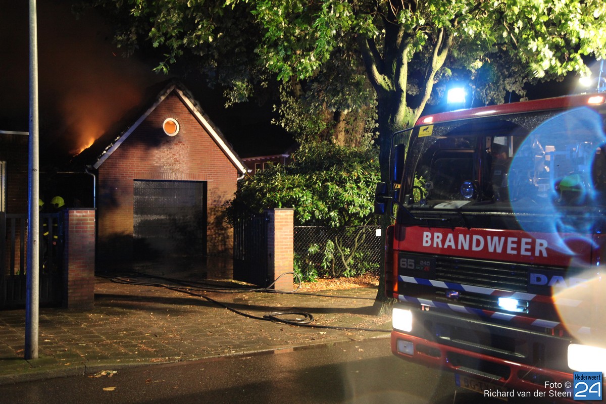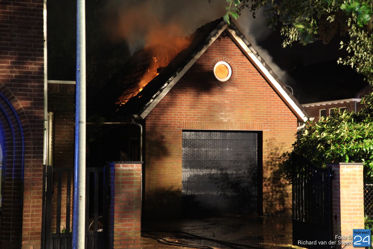 Donderdagavond is de bliksem ingeslagen bij een garage aan de Kerkstraat in Weert. Door de inslag is er brand ontstaan en is de garage volledig in vlammen opgegaan. De brandweer was snel ter plaatste en heeft kunnen voorkomen dat het vuur oversloeg naar de naastgelegen woning. Ook hebben ze de auto uit de garage gehaald.