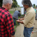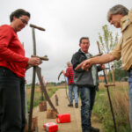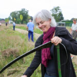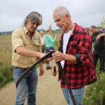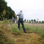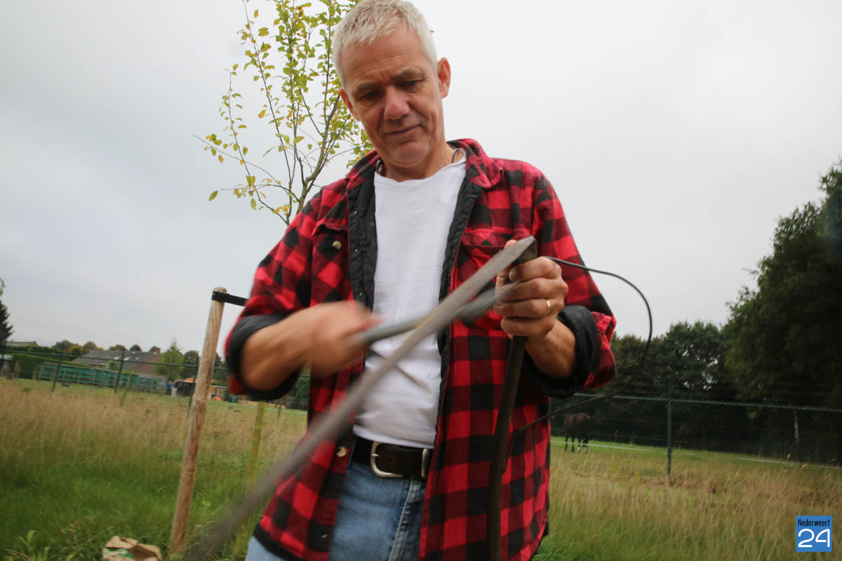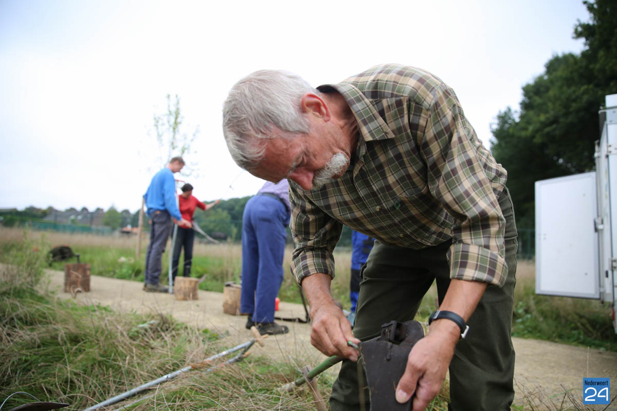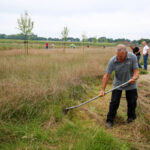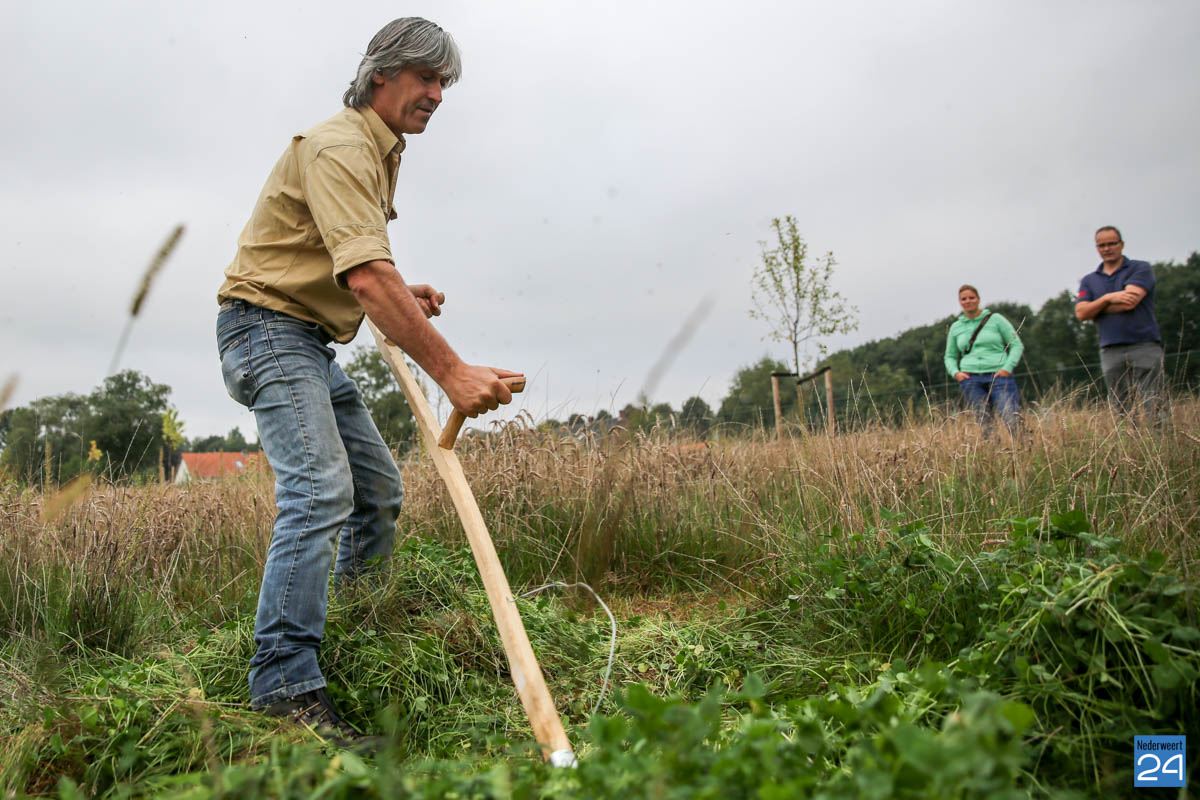 Het mooiste maaiwerk maak je met een scherpe zeis. Vandaar dat tijdens de instructie ook werd ingegaan op de afstelling van de zeis, het wetten (slijpen) en het haren (uitkloppen). Het was een echte praktijkdag. Leren door het zelf te doen.