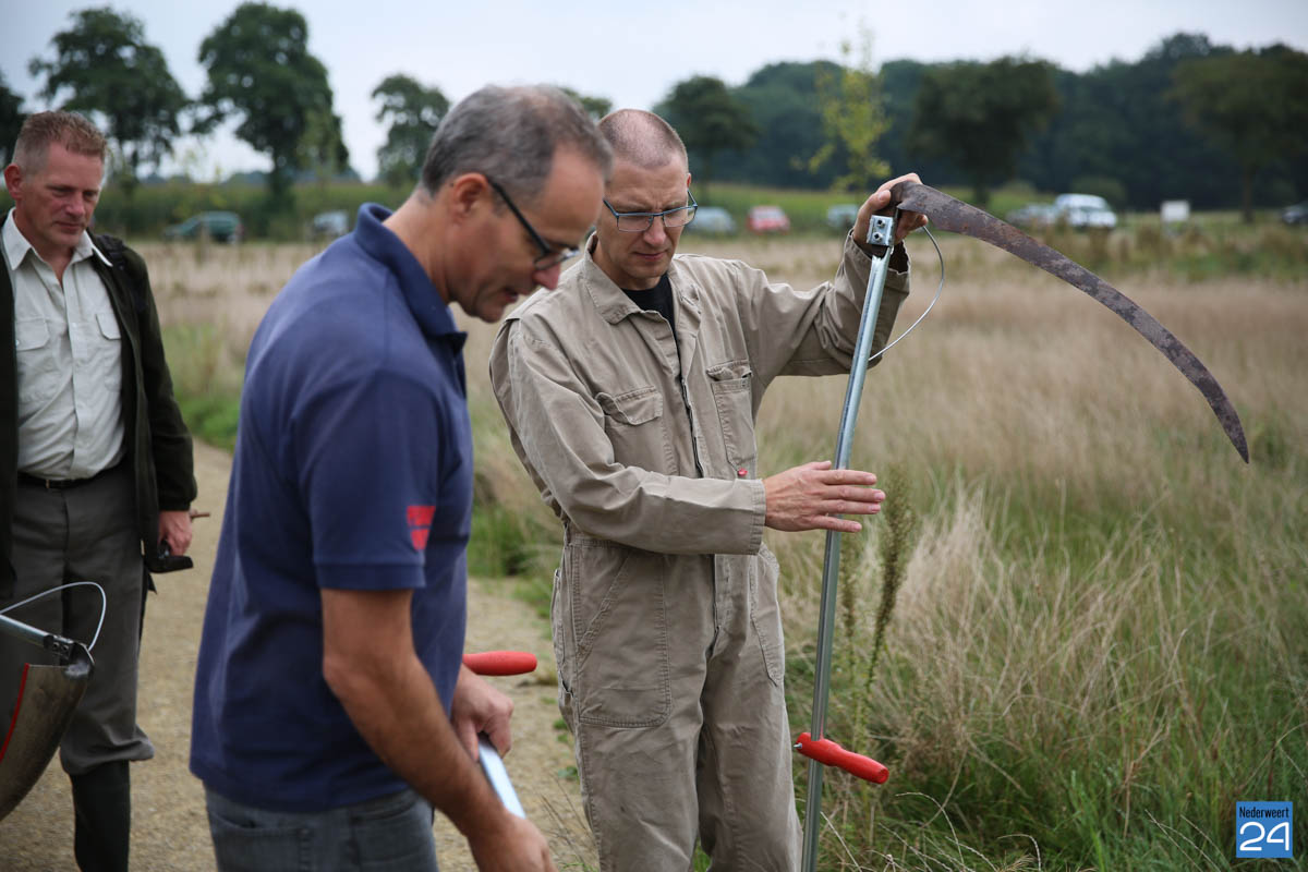 workshop-werken-met-de-zeis-nederweert-eind-1Zaterdagmorgen waren 25 cursisten van heinde en verre naar Nederweert-Eind gekomen voor de workshop “Werken met de zeis” georganiseerd door Stichting IKL samen met Openluchtmuseum Eynderhoof. Een enthousiaste Jan Kluskens instrueerde de cursisten in het nieuwe natuurgebied Rowven waarbij het werken met en het onderhoud van de zeis centraal stond.
