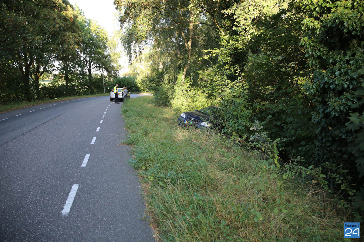 auto-in-de-berm-hushoven-3Dinsdagmiddag is op het viaduct bij Hushoven in Weert een auto uit de bocht gevlogen door een flinke plas olie die op de weg lag.