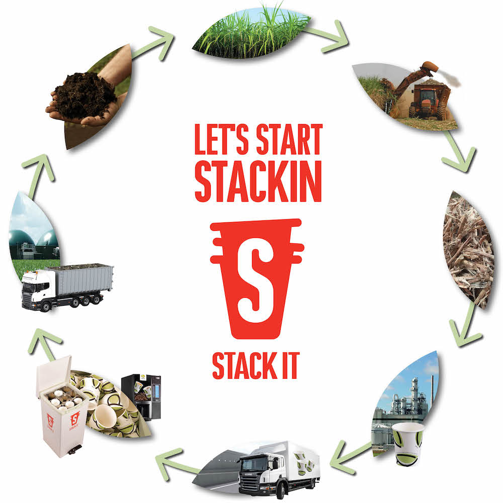Met Stack-It maakt de verpakkingsspecialist de volledige keten voor drinkbekertjes duurzaam: van grondstof tot product, van gebruiker tot afvalverwerking. Als alle Nederlandse bedrijven meedoen aan Stack-It kan er jaarlijks tienduizenden tonnen afval bespaard worden. Met Stack-It worden namelijk volledig composteerbare koffiebekers van rietsuikerafval gebruikt. Een slim inzamelsysteem bij de koffieautomaat stimuleert medewerkers om de bekers apart in te zamelen. Dit verlaagt het volume restafval en de kosten om dit te verbranden. Een communicatiepakket wordt ingezet om de MVO-bewustwording te versterken. De biologische kringloop wordt gesloten door de gebruikte bekers te verwerken tot groen gas en compost.