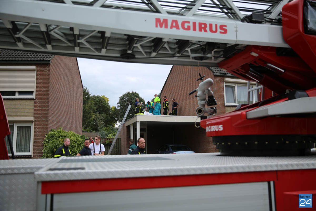 man-valt-van-ladder-nassaustraatZaterdagmiddag is een man tijdens werkzaamheden bij zijn woning aan de Nassaustraat in Nederweert van een ladder gevallen die op het plat dak stond. Een brandweerman die toevallig op de brandweerkazerne was, hoorde de man schreeuwen en is gauw poolshoogte gaan nemen.