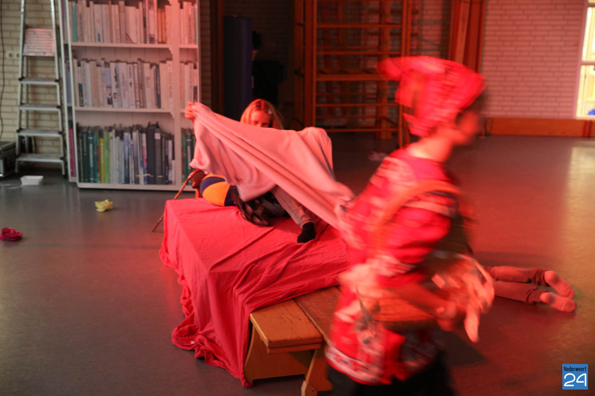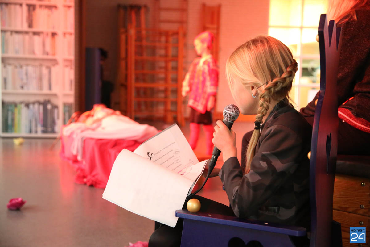 Daarna was het de beurt aan groep 7. Wat een talent zit er in die groep! Zij begonnen met een uiterst hippe versie van Roodkapje waarin oma uiteraard ook een rol speelde. Daarna brachten zij nog twee sprookjes voor het voetlicht, allen in een uiterst modern jasje gestoken.