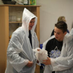 De leerlingen hadden direct al goede vragen tijdens de presentatie van Henk. Waar komen de kippen vandaan en hoe wordt het voer gemaakt. Na een film en een korte beschrijving van het bedrijf namen Henk en Anja, een medewerkster van het bedrijf, de jongeren mee door het bedrijf. Natuurlijk naar de kippen, maar ook naar de eiereninpakmachine en de robot die de stapels eieren op elkaar stapelt. Ook kregen ze uitgebreid uitleg over het voer en de verschillende ingrediënten. Als laatste natuurlijk even een kijkje bij de zonnepanelen die het bedrijf energieneutraal maken.