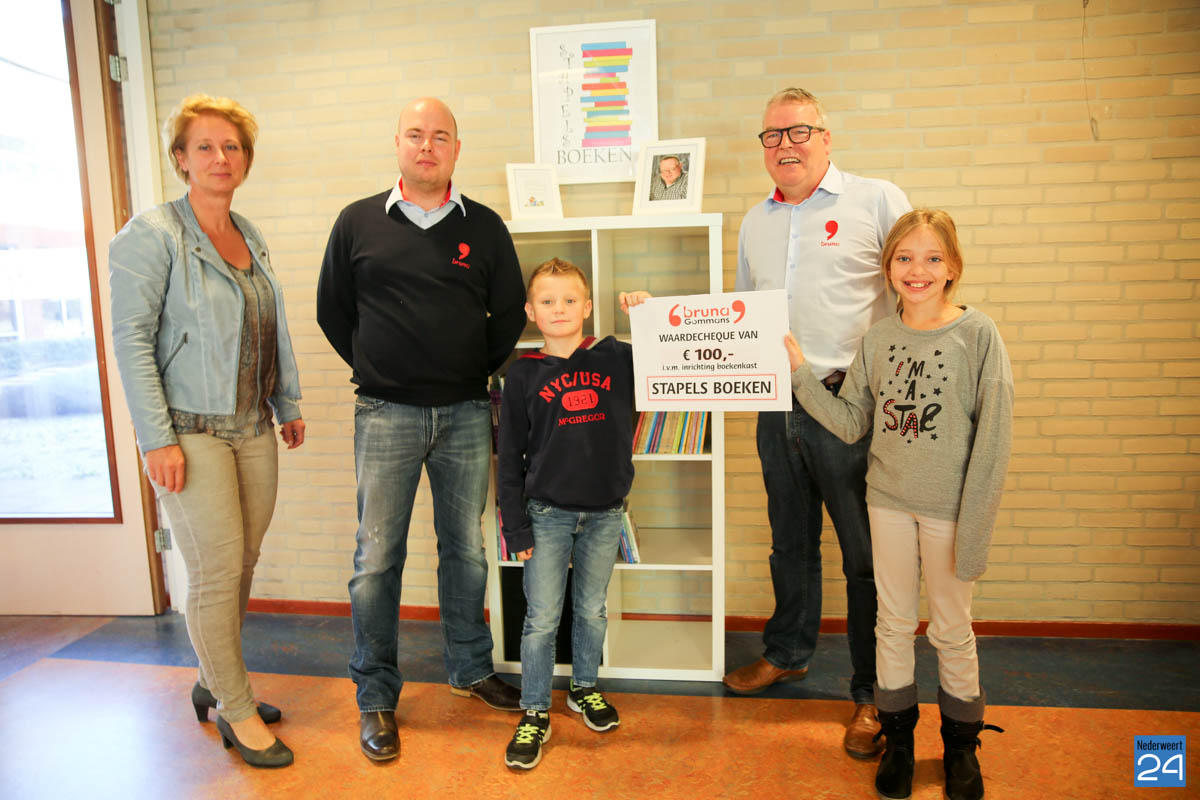 De kast werd officieel in gebruik genomen tijdens de opening van de Kinderboekenweek. Joep en Frans Gommans van de Bruna in Nederweert hadden altijd heel goed contact met Peter en hebben daarom een waardebon van €100 geschonken als vulling voor de kast. Een mooi gebaar op een mooi moment. Peter had lezen namelijk heel hoog in het vaandel staan op school en hoe mooi kan het dan zijn om tijdens de Kinderboekenweek deze ‘Stapels Boeken kast’ te openen.
