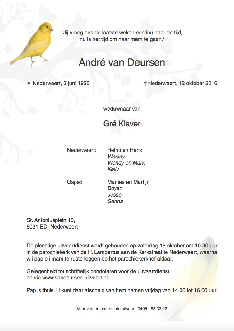 Overlijdensbericht: André van Deursen