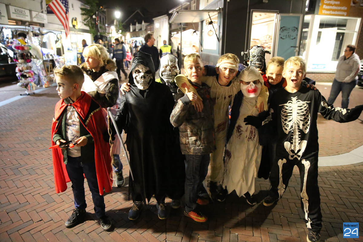 De hele middag en avond stond Nederweert in het teken van Halloween met een sfeervolle markt, muziek, eettentjes en snuisterijen. Spookachtige figuren druilden door de straten en voor de kids was er een spookspeurtocht. Op vijf griezelplekken kon iedereen opdrachten uitvoeren. Het weer was goed en er was, ondanks de schrik van de “horrorclowns”, voldoende aandacht voor het evenement.