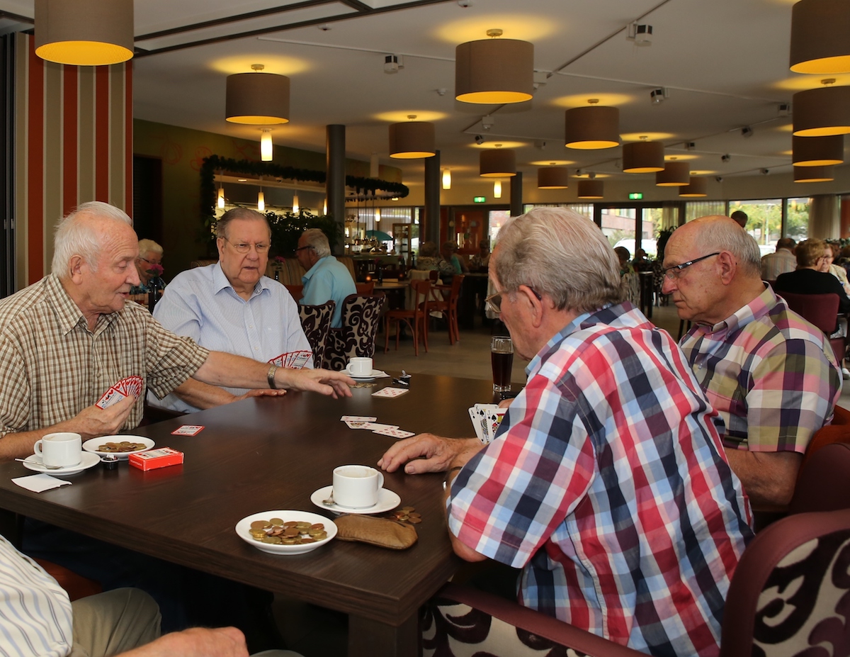 De kaartmiddag begint om 14.00 uur. “De deelnemers worden ontvangen met twee kopjes koffie of thee met iets lekkers. Daarna maken zij kennis met de kaartpartners voor die middag”, vertelt Henk de Wit, teamleider Catering. Tijdens het kaarten krijgen de deelnemers een consumptie aangeboden en om 16:30 uur, na het kaarten, kunnen zij genieten van een lekkere kop erwtensoep met roggebrood en spek erbij. “Voor deelname aan deze complete middag vragen wij € 10”, aldus De Wit. “Als iemand wel wil kaarten, maar geen gebruik wil maken van het eten om 16.30 uur, dan kost deze middag € 6,00.”