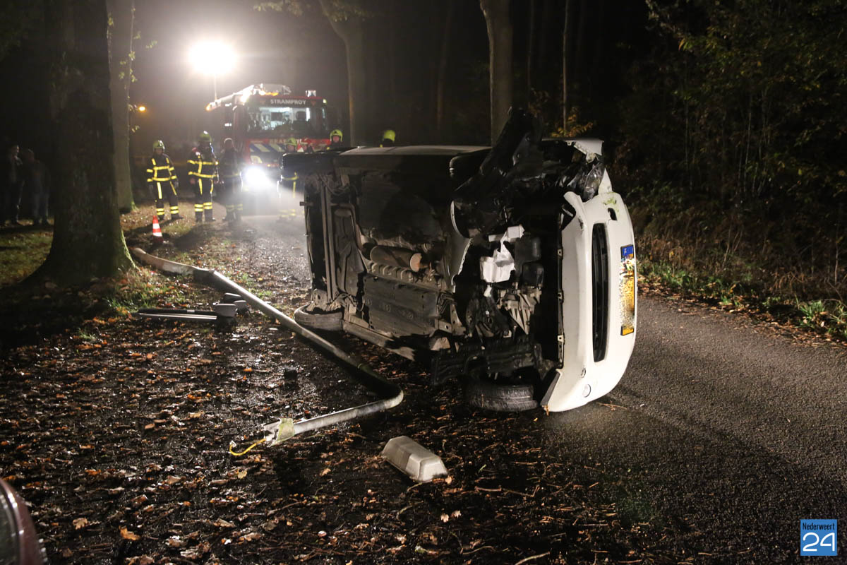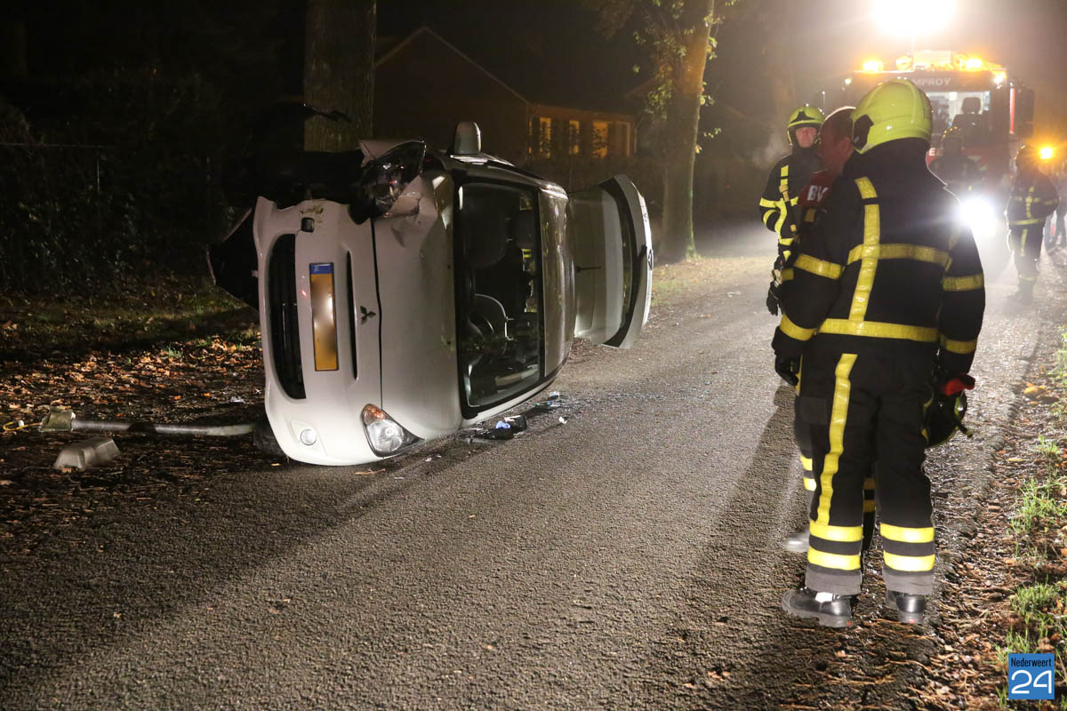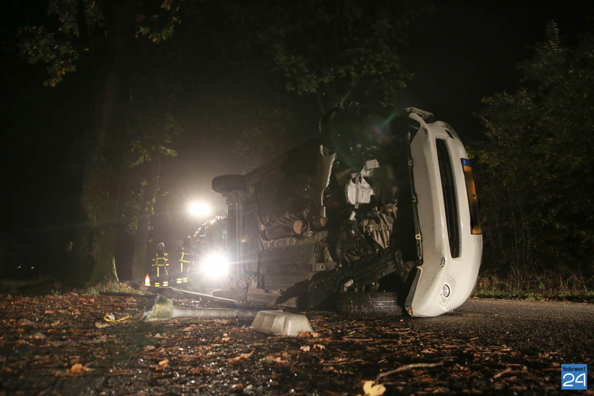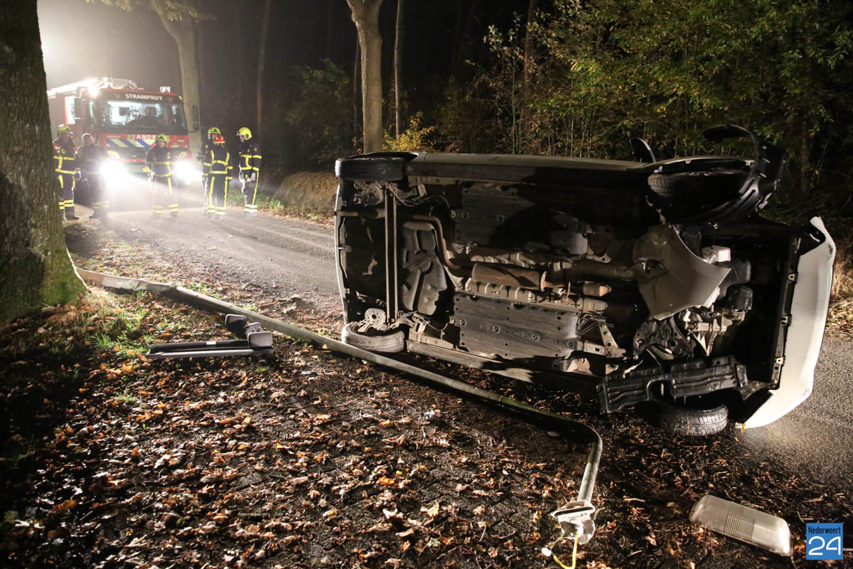 In de nacht van zaterdag op zondag is een auto tegen een lantaarnpaal gereden en op z’n zijkant tot stilstand gekomen. Het ongeval gebeurde op de Tuurkesweg in Tungelroy.