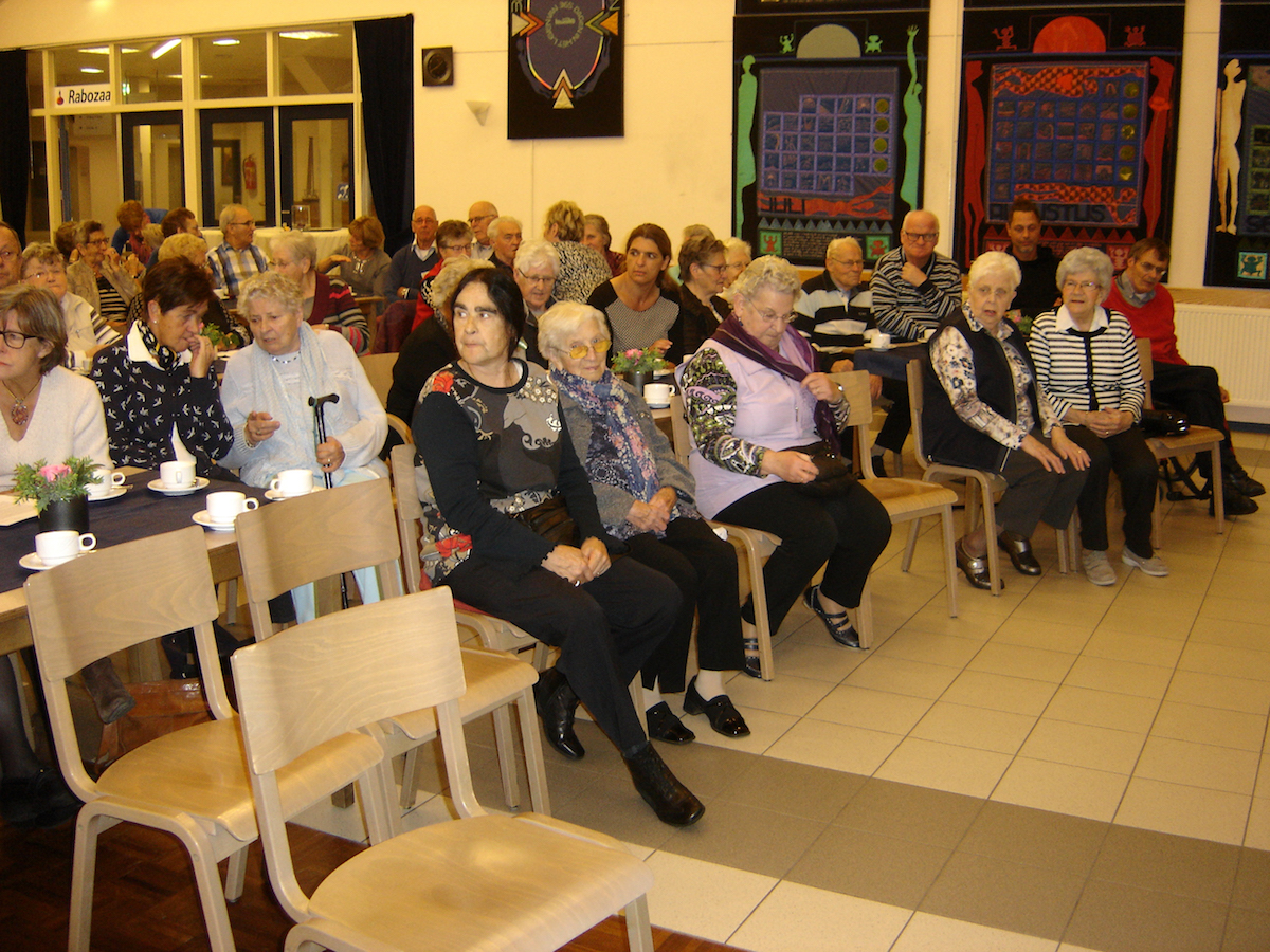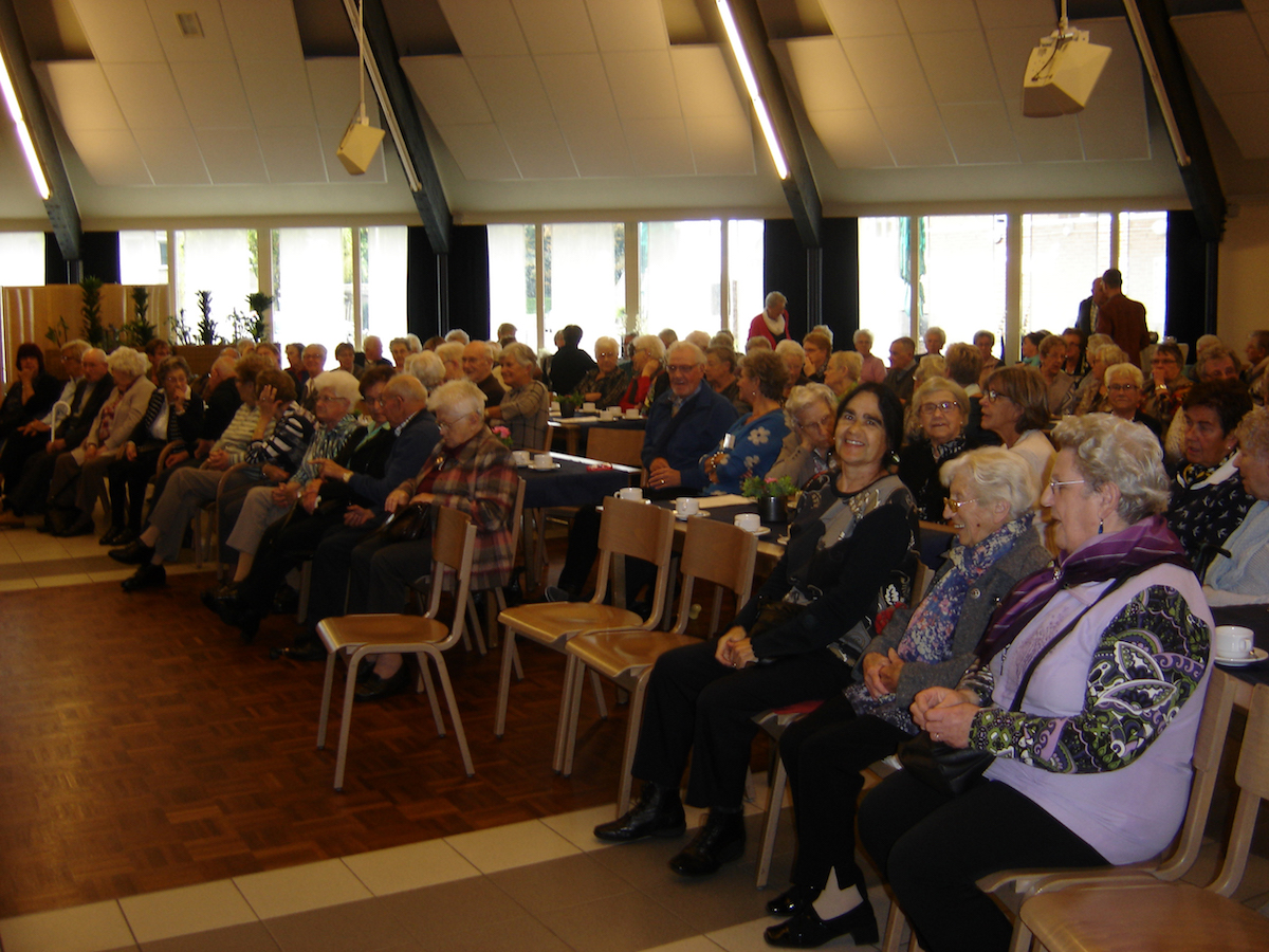 Rond de klok van vier uur werd de middag afgesloten met een welgemeend dankwoord door de eerder genoemde voorzitter. De musici werden verblijdt met een gepaste attentie en de gasten vertrokken weer huiswaarts. De vele vrijwilligers bleven even na om de zaal weer op orde te brengen. Vele handen maakte licht werk. Dank aan alle vrijwilligers die weer hun uiterste best hadden gedaan om de gasten weer een voortreffelijke middag te bezorgen. Hopend krijgt het volgend jaar in oktober weer een vervolg want de gasten verheugen zich er nu al op.