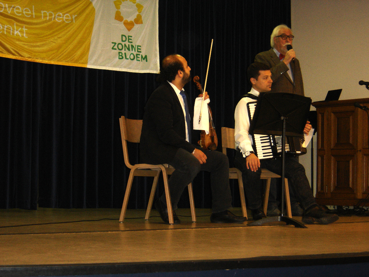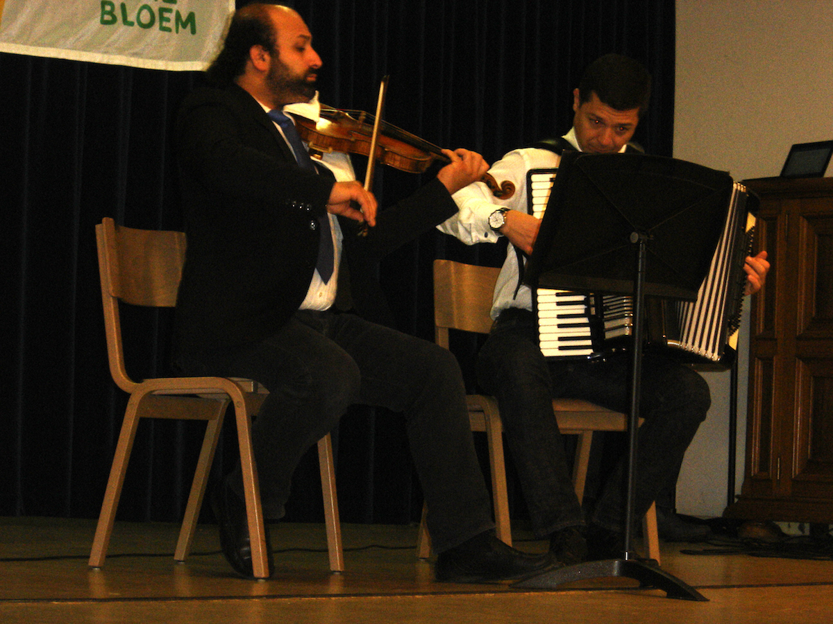 Voor de pauze vertolkten de heren Rauf Berman Guseinov met viool (werkt samen met André Rieu) en Vasileios Mantoudis uit Griekenland met accordeon zowel klassieke als hedendaagse muziek van hoog niveau. De presentatie was in handen van de heer John Paris. Diverse nummers die bekend in de oren klonken werden veelal mee geneuried. De heren waren zichtbaar ontdaan door het vele gulle applaus wat ze mochten ontvangen.