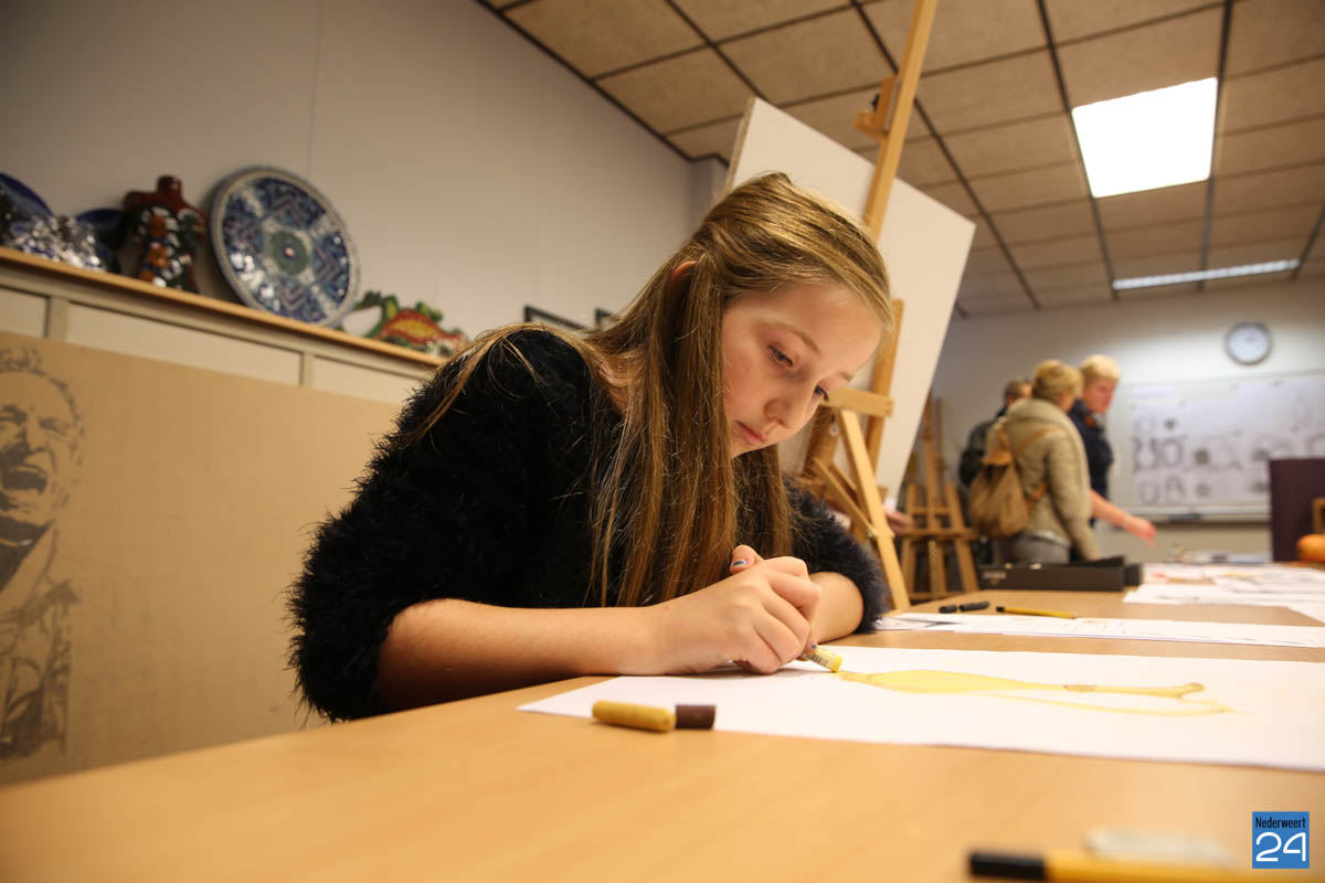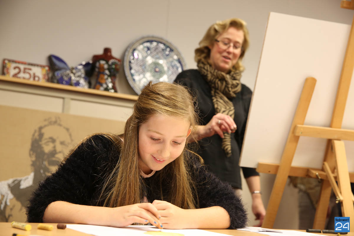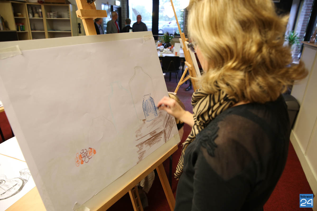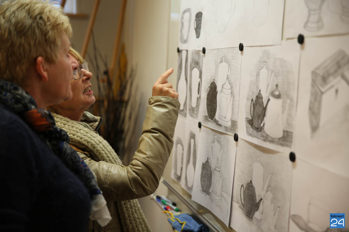 Enkele cursisten van het atelier waren ter plekke een stilleven aan het tekenen. Terwijl de belangstellenden op hun gemak de werkstukken van de cursussen Tekenen en de workshops Mozaïek konden bekijken. In maart 2016 opende Miriam Vaes-van Nieuwenhoven voor het eerst de deuren van het atelier aan de Rijksweg-Zuid 4. Het cursusaanbod vind je op de website www.atelierdetekenkamernederweert.nl.