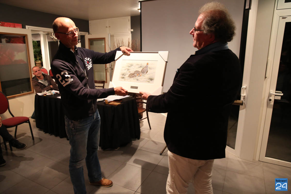 De jury van het SOVON overhandigde Thijs Loven daarom het certificaat van Vrijwilliger van het Jaar, de zilveren Sovon-speld en een fraai schilderij van zijn lievelingsvogel, de Patrijs. Vervolgens mocht hij in aanwezigheid van zijn echtgenote de felicitaties in ontvangst nemen van Burgemeester Henk Evers en het bestuur plus leden van de Vogelwerkgroep Nederweert.